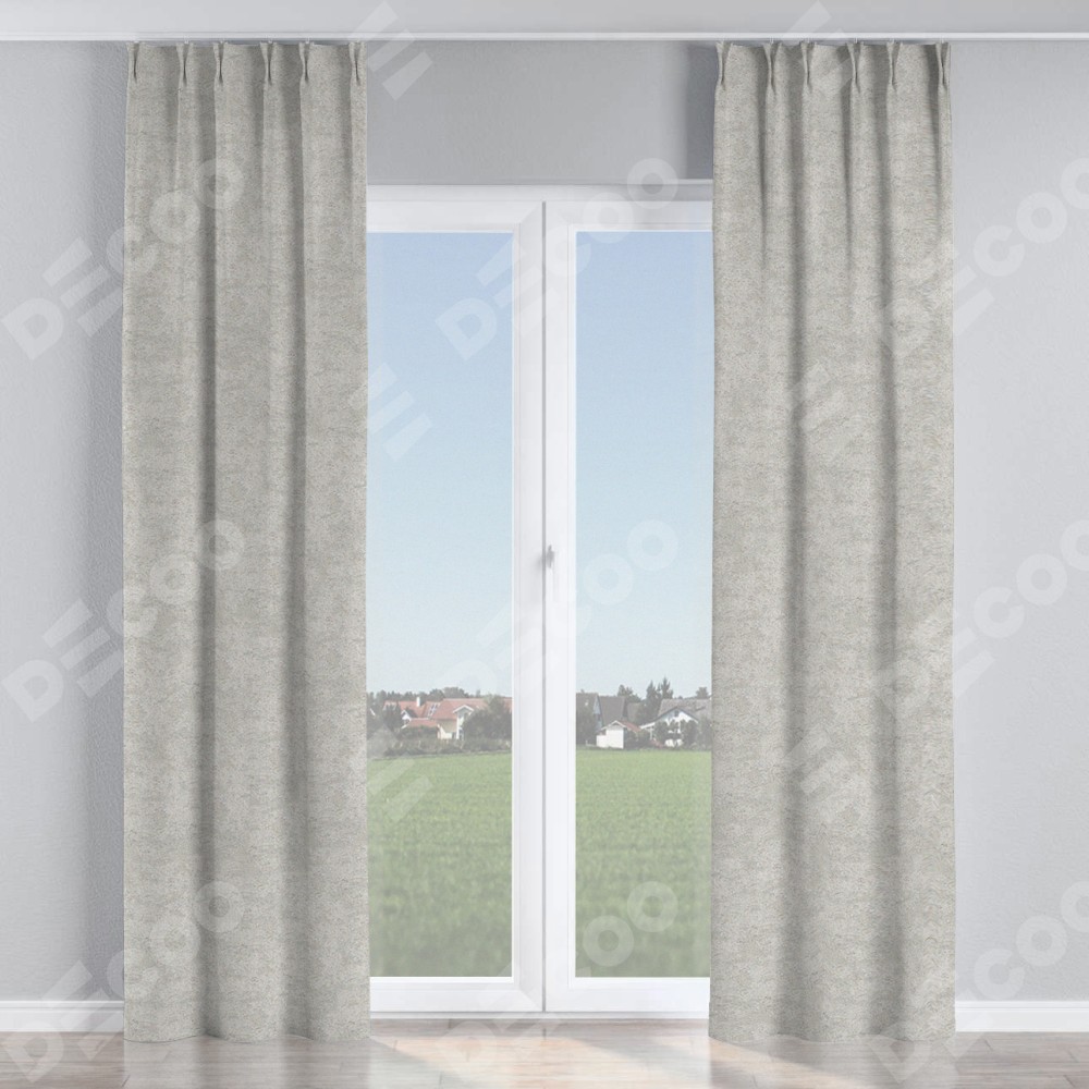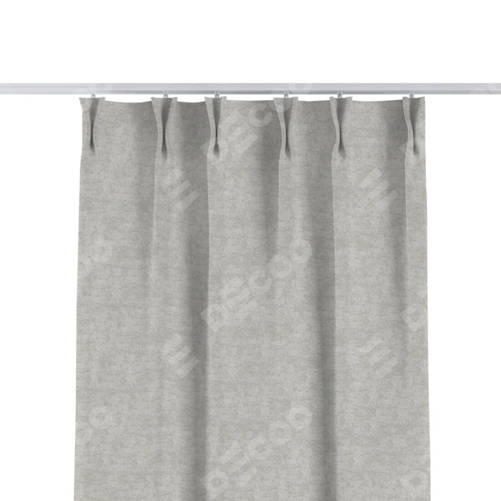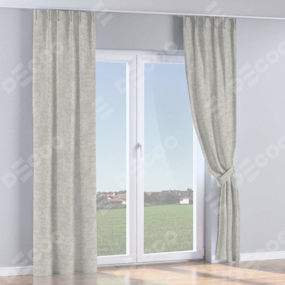 Комплект прямых штор, от производителя «Cortin», пошиты из ткани софт мрамор светло-серый, артикул ткани 93582. С изнаночной стороны в верхней части штор пристрачивается шторная лента с декоративными складками «Кустик». Для создания элегантных складок прямые шторы шьются по стандарту с коэффициентом 1:2 (на 100 см. ширины проёма 200 см. ширины ткани).