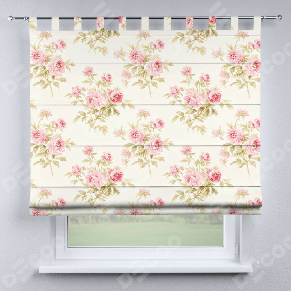 Римская штора производителя «Cortin», используется для проёма, пошита из ткани блэкаут с нанесением сублимационной печати «Английский шебби-шик». Данная модель пошита на петлях, комплектуется на выбор круглым карнизом и подходит для монтажа на стену. Римская штора на петлях имеет простую систему регулировки высоты, отличительным преимуществом данной модели является простой способ монтажа. Достаточно повесить ее на трубу и штора готова!