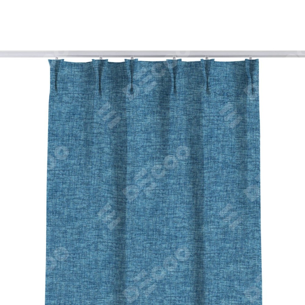 Комплект прямых штор, от производителя «Cortin», пошиты из ткани рогожка димаут джинс, артикул ткани 91026. С изнаночной стороны в верхней части штор пристрачивается шторная лента с декоративными складками «Кустик». Для создания элегантных складок прямые шторы шьются по стандарту с коэффициентом 1:2 (на 100 см. ширины проёма 200 см. ширины ткани).