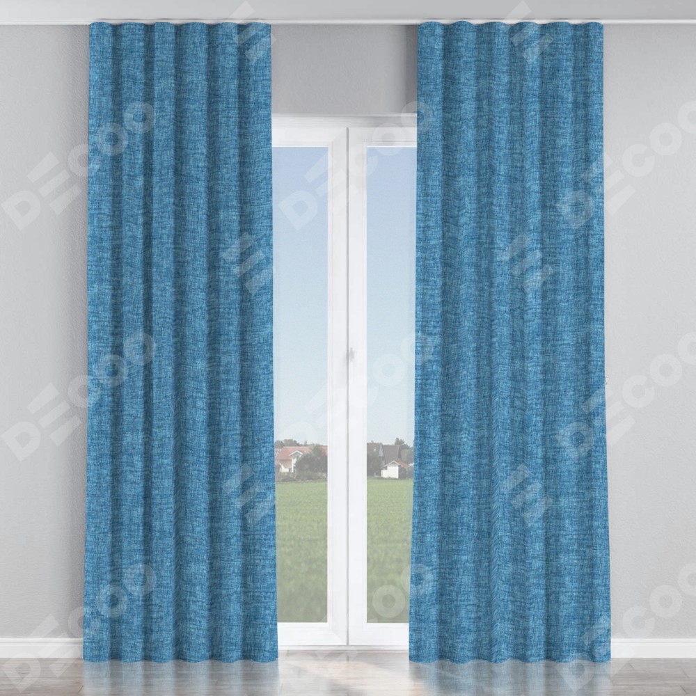 Комплект прямых штор, от производителя «Cortin», пошиты из ткани рогожка димаут джинс, артикул ткани 91026. С изнаночной стороны в верхней части штор пристрачивается шторная лента с декоративными складками «Волна». Для создания элегантных складок прямые шторы шьются по стандарту с коэффициентом 1:2 (на 100 см. ширины проёма 200 см. ширины ткани).