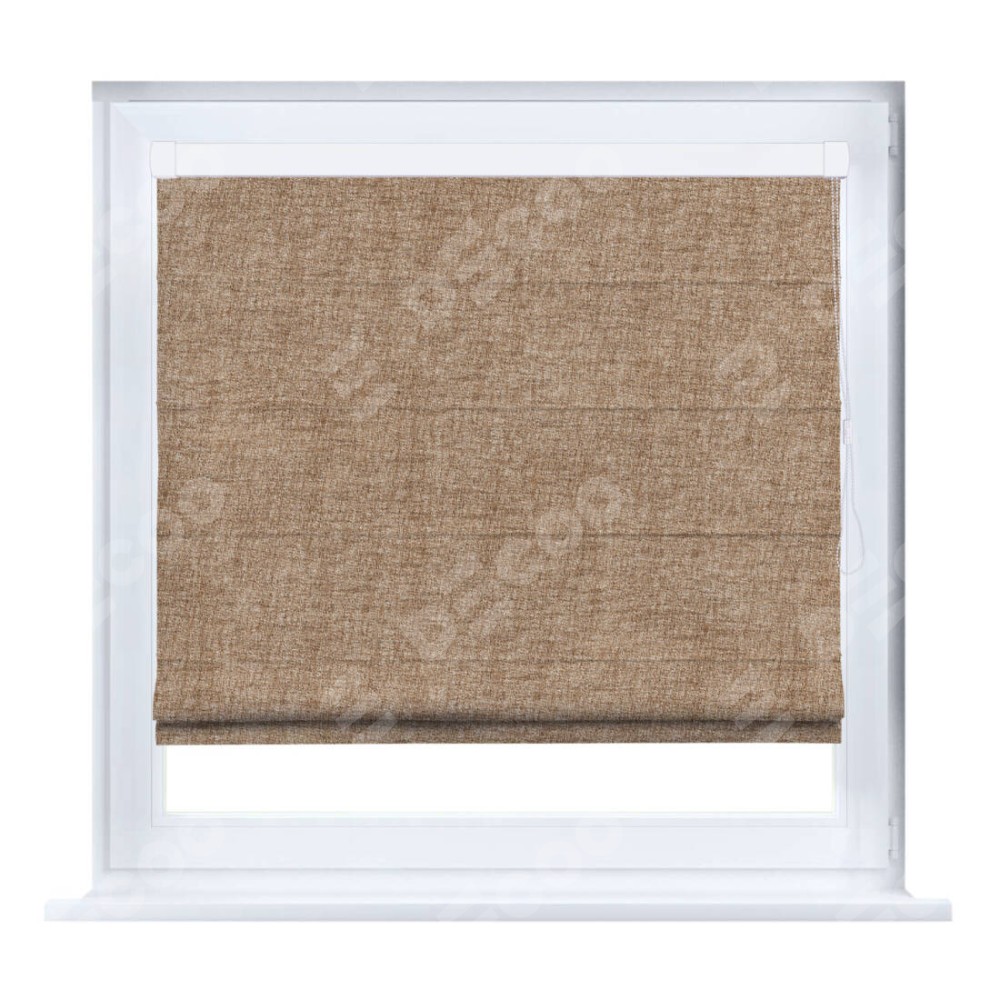Римская штора производителя «Cortin», устанавливается на створку окна, пошита из ткани рогожка димаут светло-коричневый, артикул 91017. Штора шьётся по индивидуальным размерам, для данного типа римской шторы возможная ширина от 35 до 150 см., высота до 250 см.