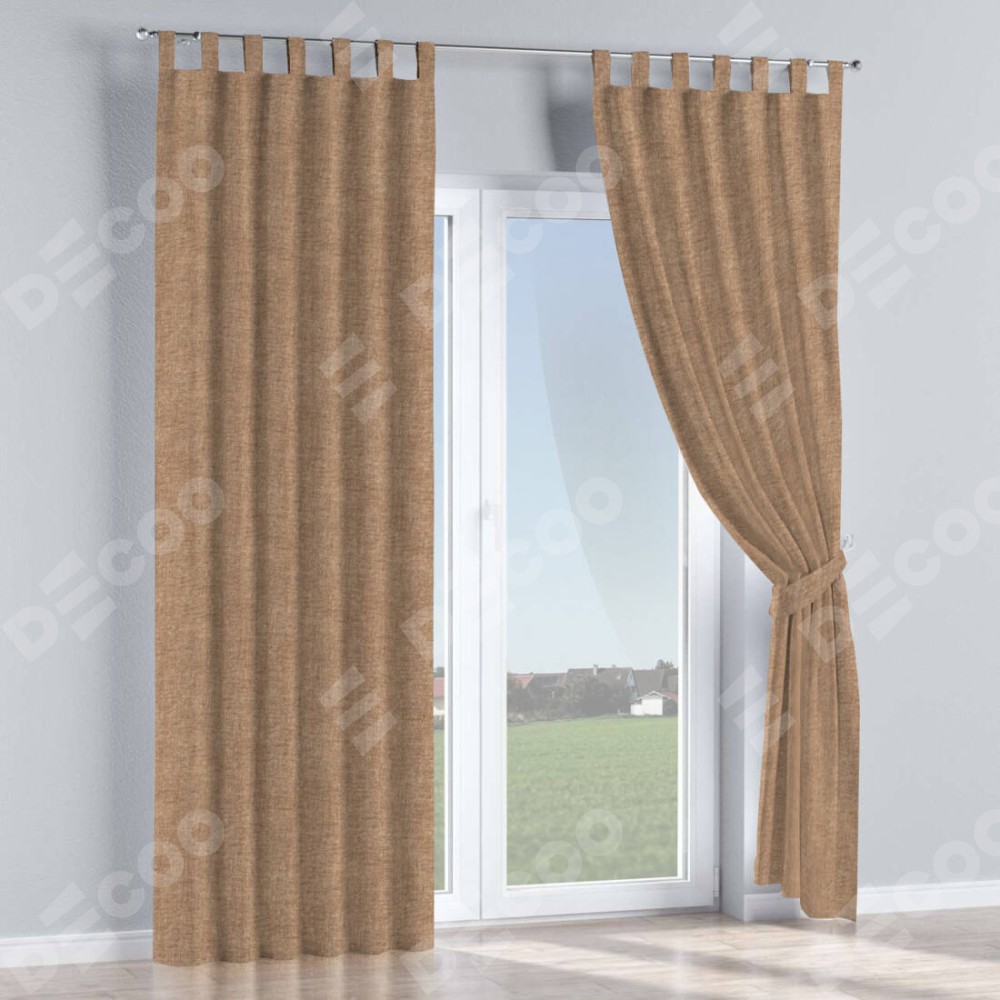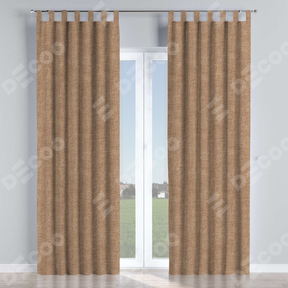 Комплект прямых штор, от производителя «Cortin», пошиты из ткани рогожка димаут светло-коричневый, артикул ткани 91017. Данная модель пошита на петлях, комплектуется на выбор круглым карнизом и подходит для монтажа на стену или потолок. Прямые шторы на петлях шьются по стандарту с коэффициентом 1/2 (на 100 см. ширины проёма 200 см. ширины ткани), отличительным преимуществом данной модели является простой способ монтажа. Достаточно повесить ее на трубу и штора готова!