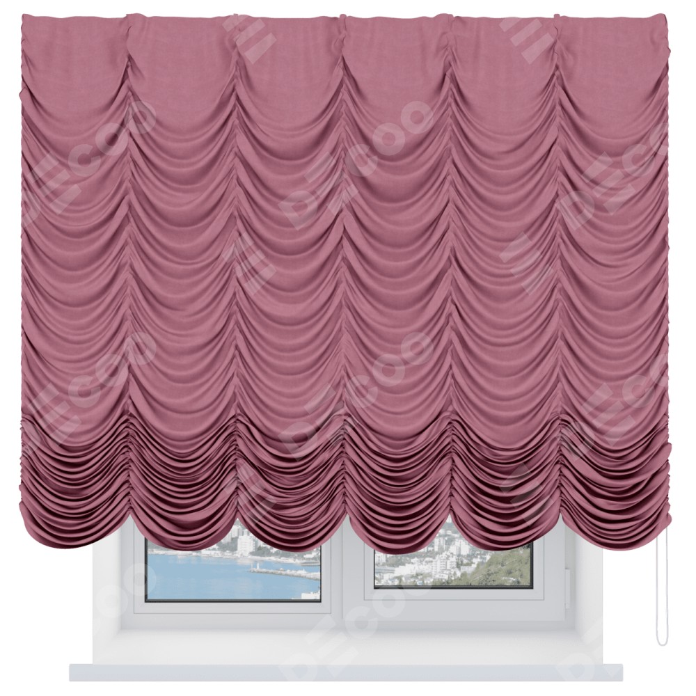 Французская штора производителя «Cortin», используется для проёма, пошита из ткани вельвет брусника, артикул ткани 85550. Имеет универсальный механизм и подходит для монтажа: на потолок и на стену.