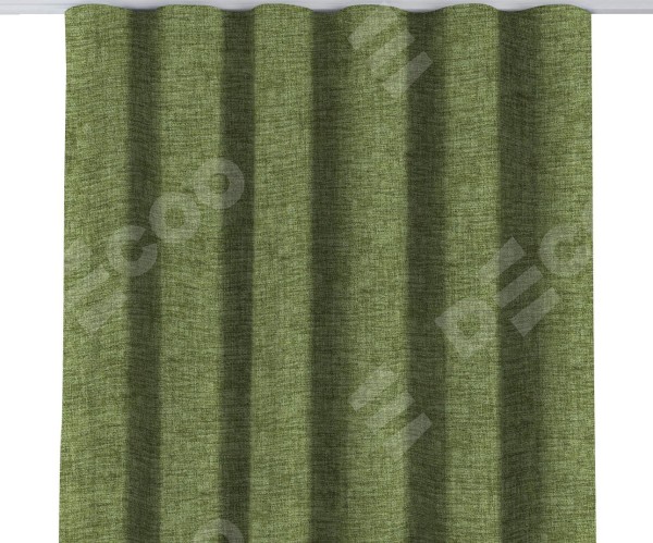 Комплект прямых штор, от производителя «Cortin», пошиты из ткани рогожка димаут травяной, артикул ткани 91021. С изнаночной стороны в верхней части штор пристрачивается шторная лента с декоративными складками «Волна». Для создания элегантных складок прямые шторы шьются по стандарту с коэффициентом 1:2 (на 100 см. ширины проёма 200 см. ширины ткани).