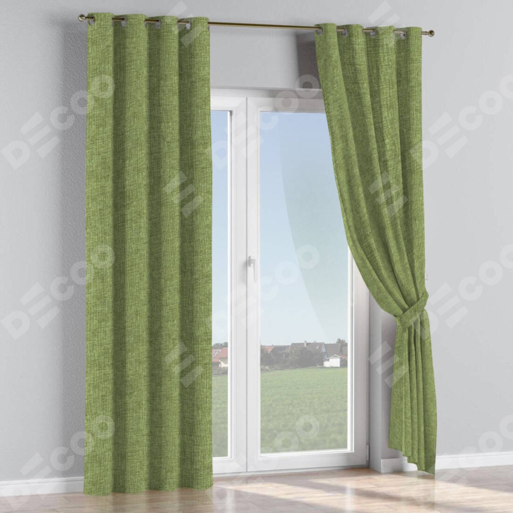 Комплект прямых штор, от производителя «Cortin», пошиты из ткани рогожка димаут травяной, артикул ткани 91021. Данная модель пошита на люверсах, комплектуется на выбор круглым карнизом и подходит для монтажа на стену или потолок. Прямые шторы на люверсах шьются по стандарту с коэффициентом 1/2 (на 100 см. ширины проёма 200 см. ширины ткани), отличительным преимуществом данной модели является простой способ монтажа. Достаточно повесить ее на трубу и штора готова!
