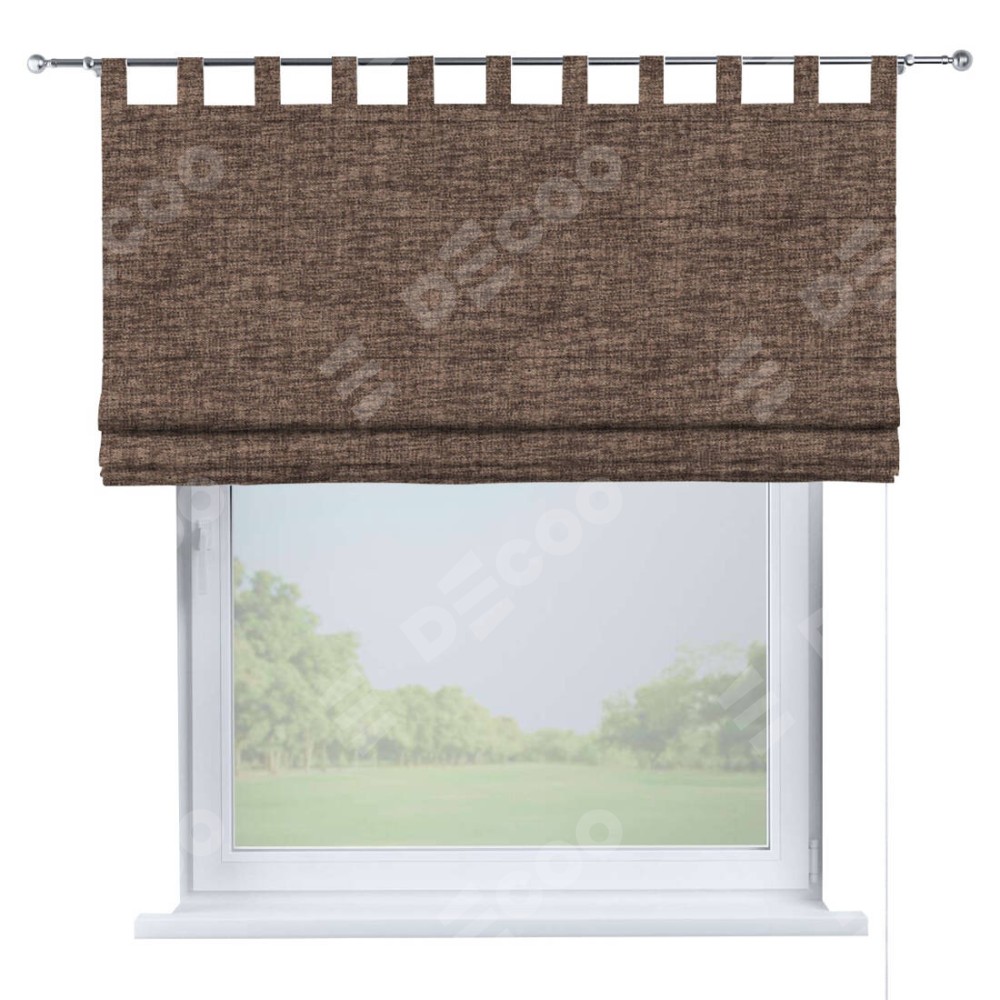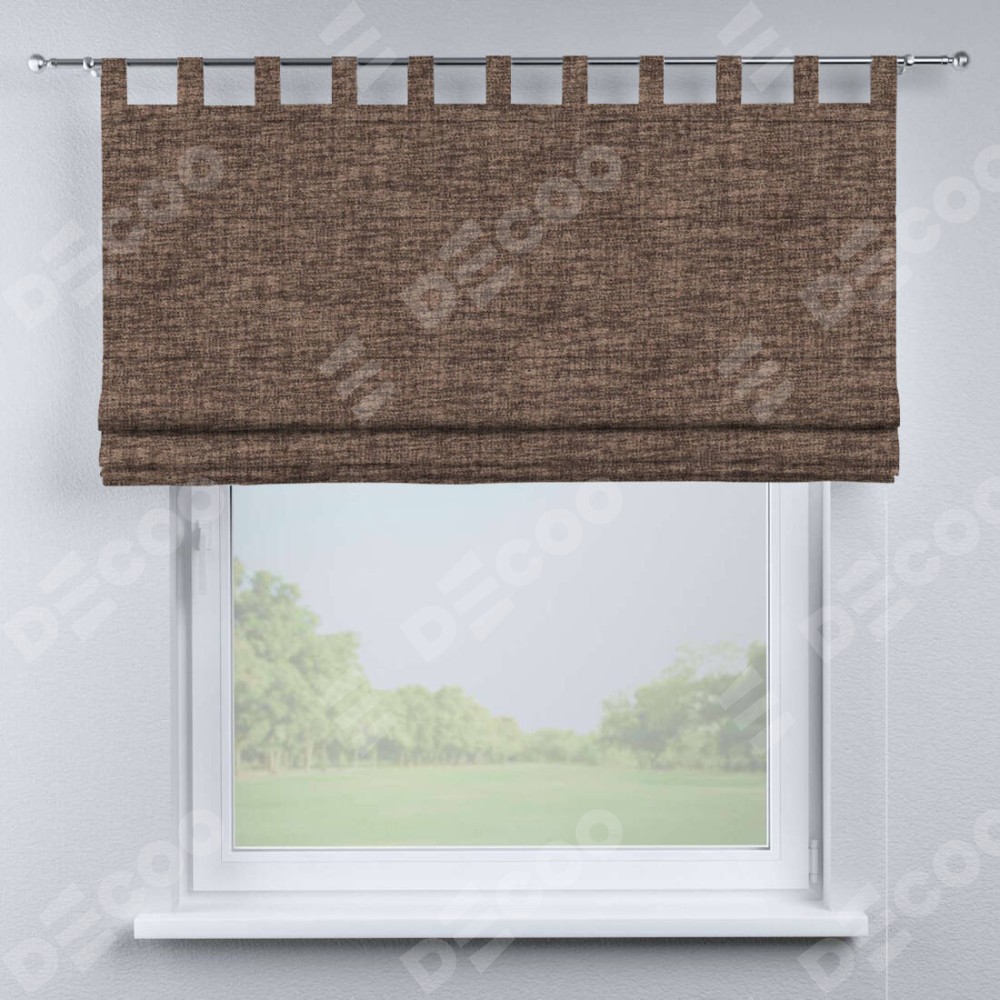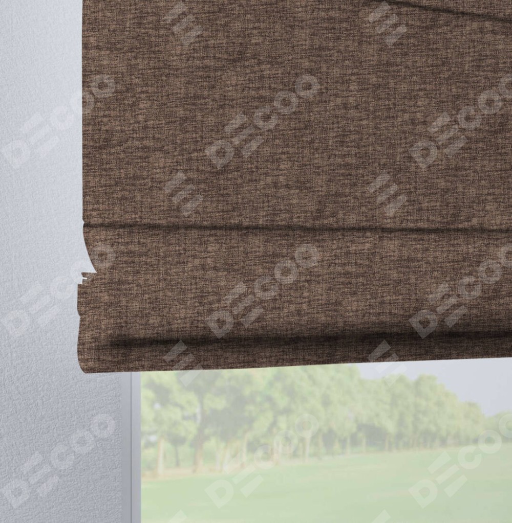 Римская штора «Кортин», рогожка димаут коричневый, на петлях