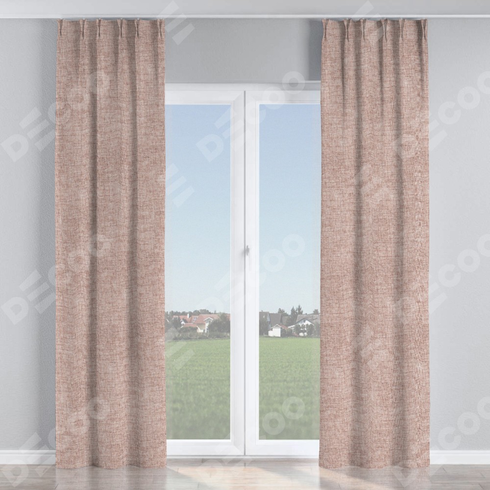 Комплект прямых штор, от производителя «Cortin», пошиты из ткани рогожка димаут пыльный розовый, артикул ткани 91019. С изнаночной стороны в верхней части штор пристрачивается шторная лента с декоративными складками «Кустик». Для создания элегантных складок прямые шторы шьются по стандарту с коэффициентом 1:2 (на 100 см. ширины проёма 200 см. ширины ткани).