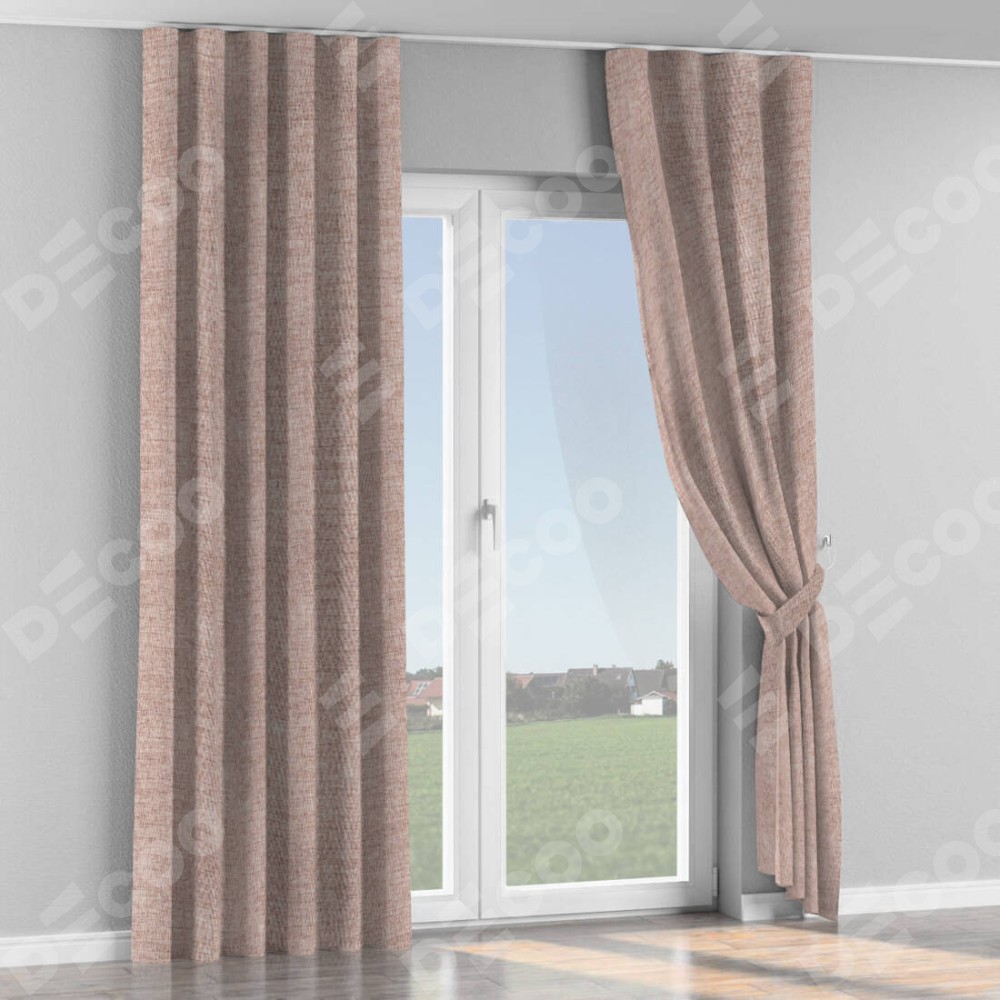 Комплект прямых штор, от производителя «Cortin», пошиты из ткани рогожка димаут пыльный розовый, артикул ткани 91019. С изнаночной стороны в верхней части штор пристрачивается шторная лента с декоративными складками «Волна». Для создания элегантных складок прямые шторы шьются по стандарту с коэффициентом 1:2 (на 100 см. ширины проёма 200 см. ширины ткани).