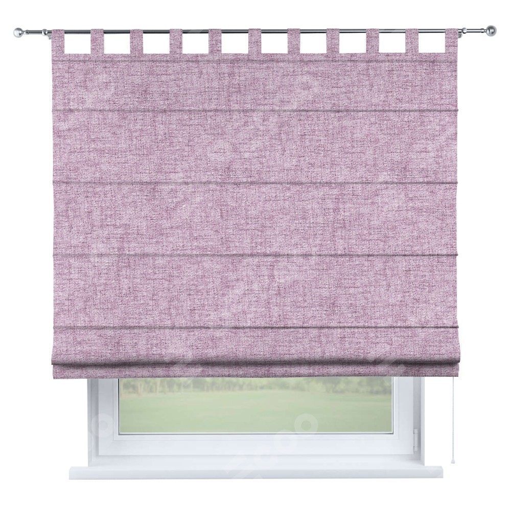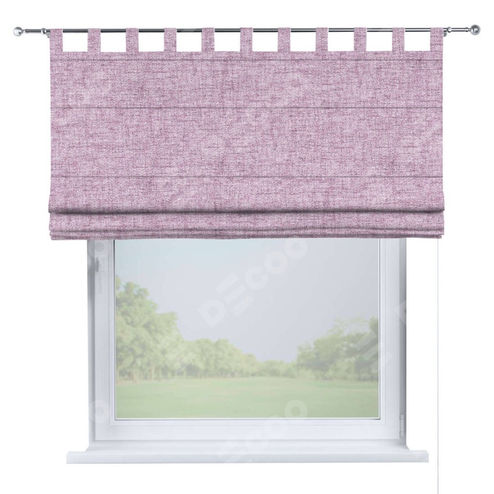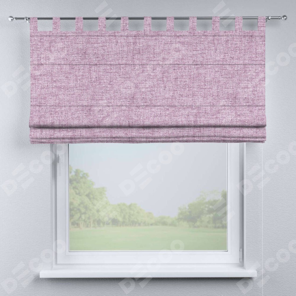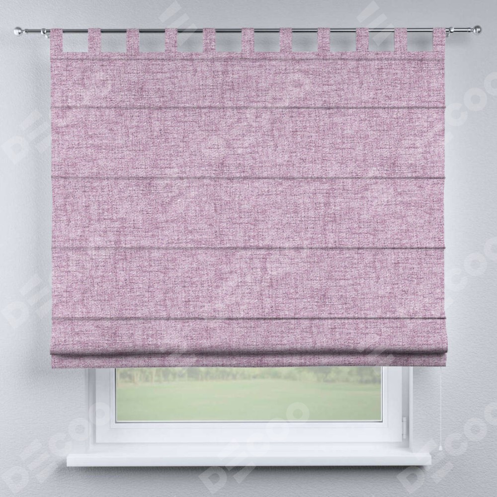 Римская штора производителя «Cortin», используется для проёма, пошита из ткани рогожка димаут розовый, артикул ткани 91031. Данная модель пошита на петлях, комплектуется на выбор круглым карнизом и подходит для монтажа на стену. Римская штора на петлях имеет простую систему регулировки высоты, отличительным преимуществом данной модели является простой способ монтажа. Достаточно повесить ее на трубу и штора готова!