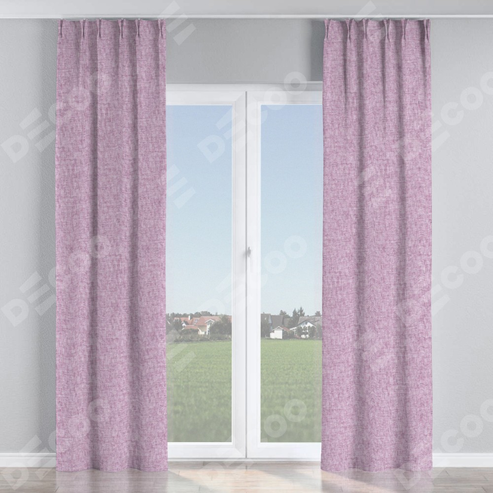 Комплект прямых штор, от производителя «Cortin», пошиты из ткани рогожка димаут розовый, артикул ткани 91031. С изнаночной стороны в верхней части штор пристрачивается шторная лента с декоративными складками «Кустик». Для создания элегантных складок прямые шторы шьются по стандарту с коэффициентом 1:2 (на 100 см. ширины проёма 200 см. ширины ткани).