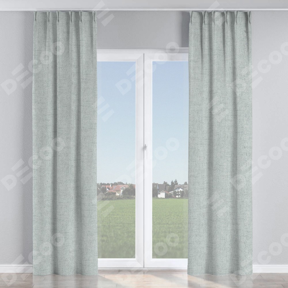Комплект прямых штор, от производителя «Cortin», пошиты из ткани рогожка димаут серый, артикул ткани 91027. С изнаночной стороны в верхней части штор пристрачивается шторная лента с декоративными складками «Кустик». Для создания элегантных складок прямые шторы шьются по стандарту с коэффициентом 1:2 (на 100 см. ширины проёма 200 см. ширины ткани).