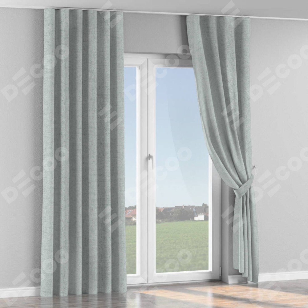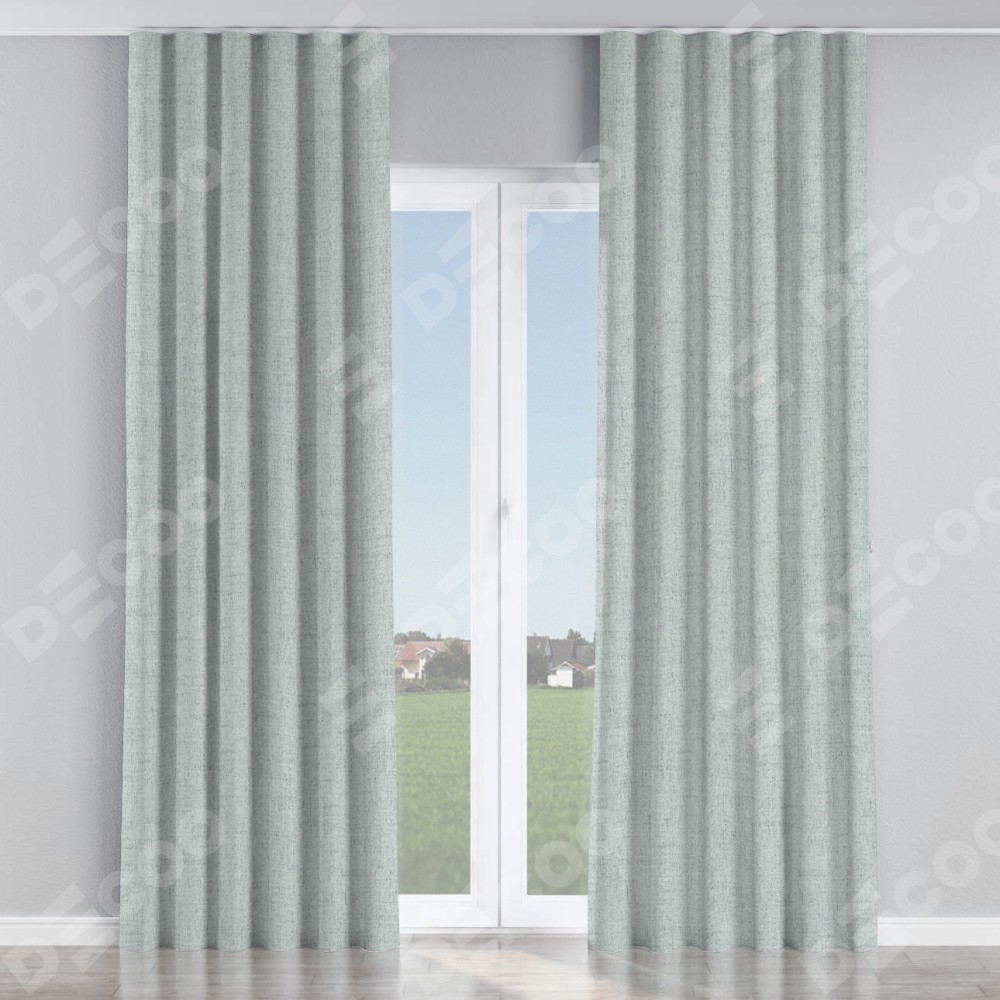 Комплект прямых штор, от производителя «Cortin», пошиты из ткани рогожка димаут серый, артикул ткани 91027. С изнаночной стороны в верхней части штор пристрачивается шторная лента с декоративными складками «Волна». Для создания элегантных складок прямые шторы шьются по стандарту с коэффициентом 1:2 (на 100 см. ширины проёма 200 см. ширины ткани).