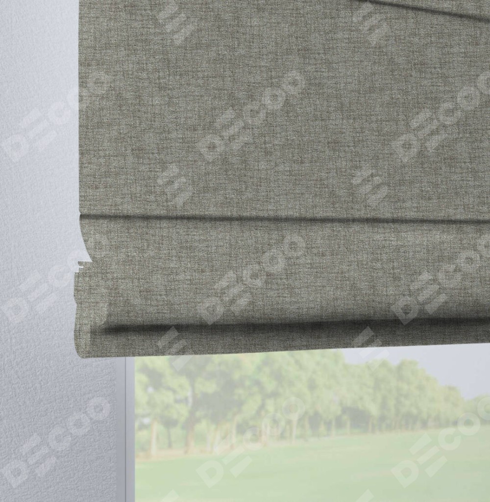 Римская штора «Кортин», рогожка димаут серый дуб, на петлях