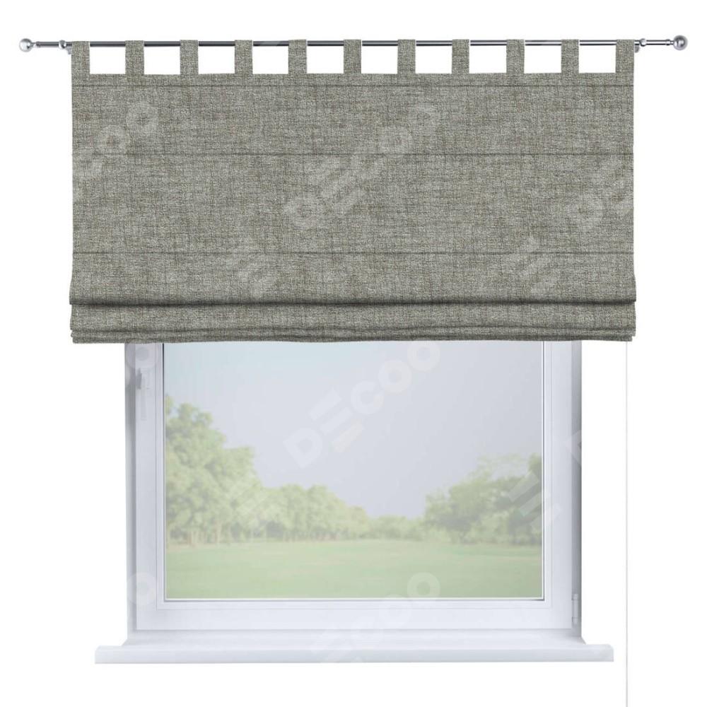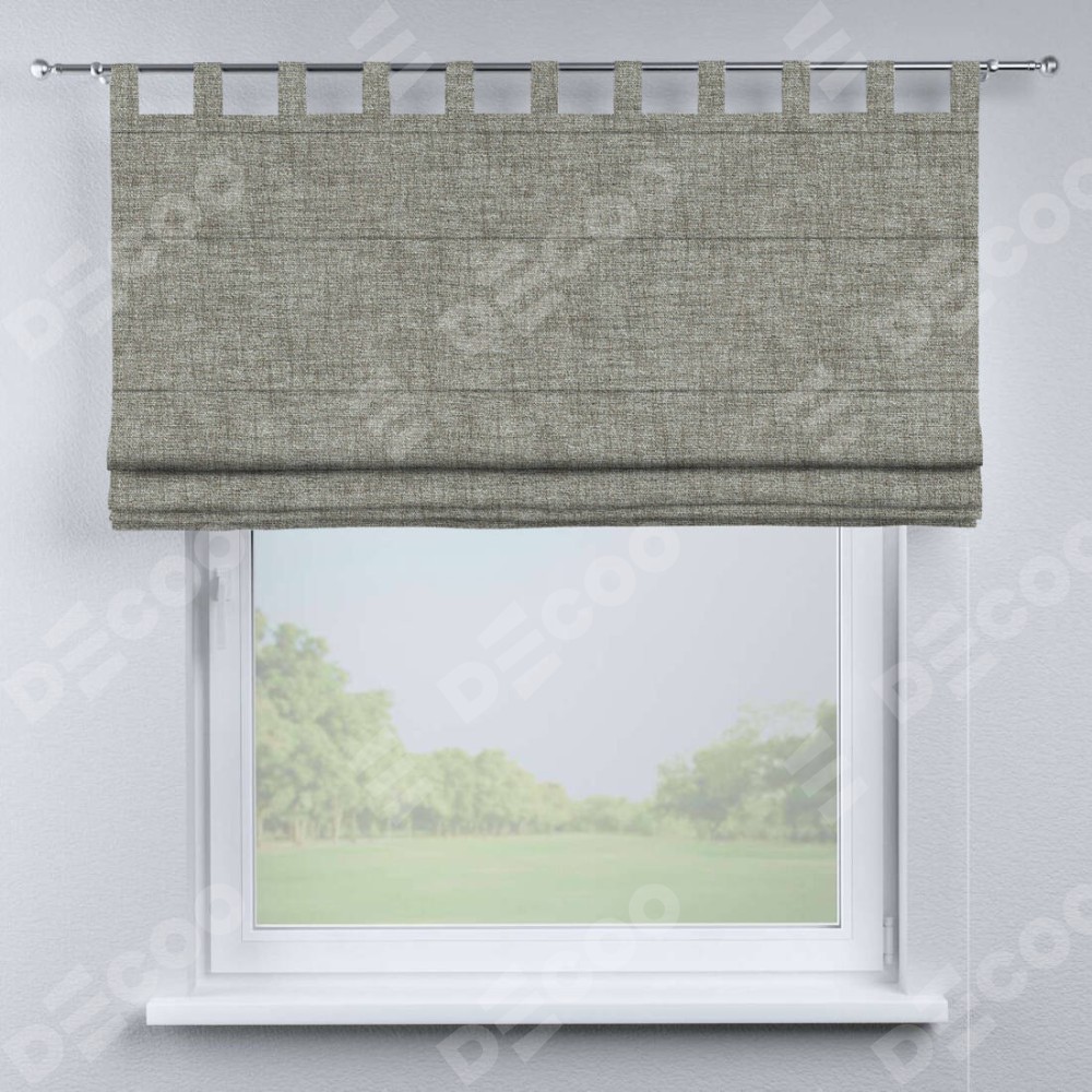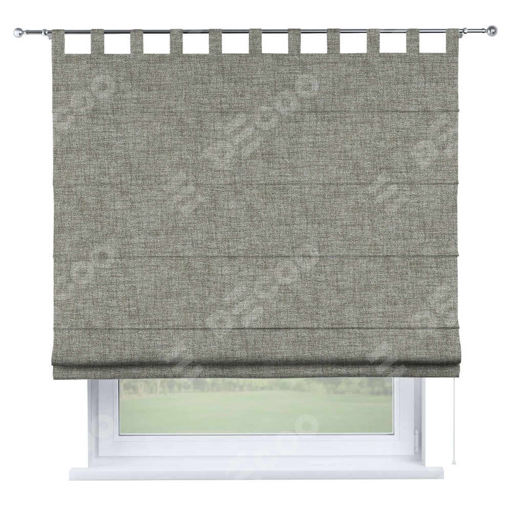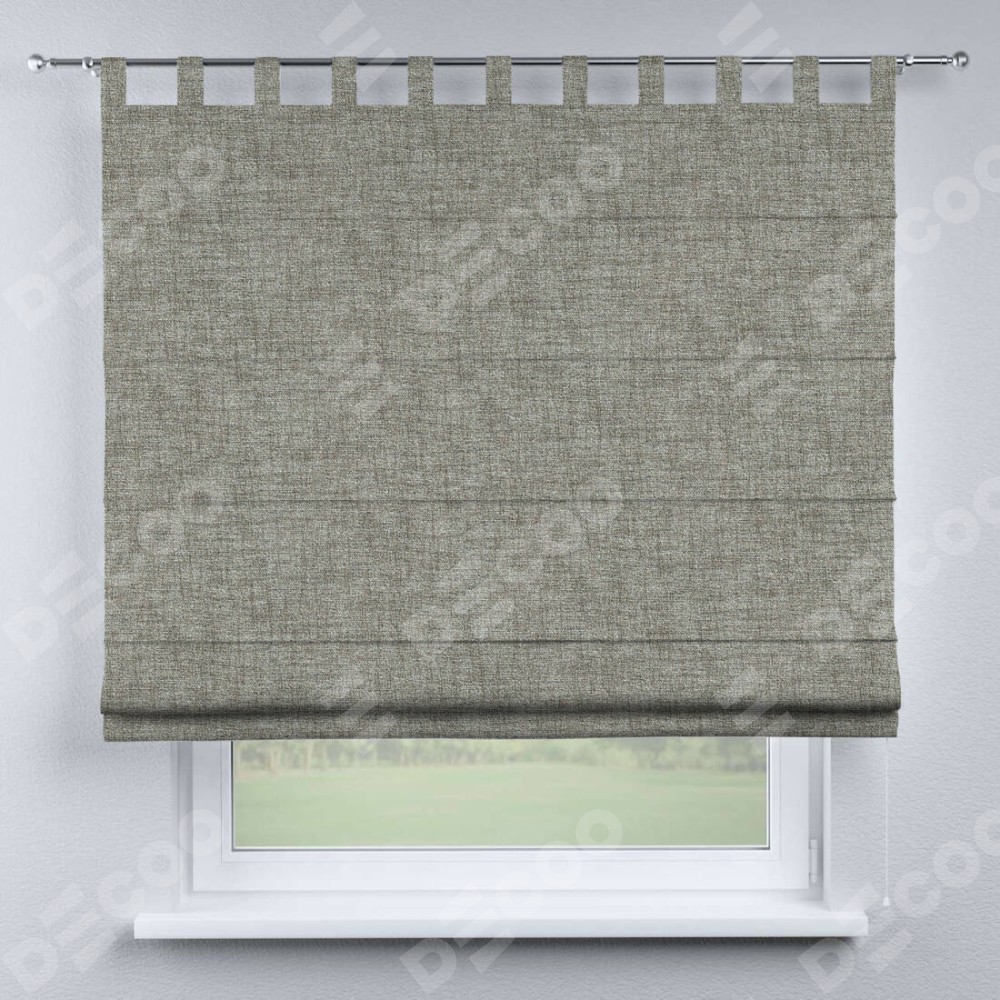 Римская штора производителя «Cortin», используется для проёма, пошита из ткани рогожка димаут серый дуб, артикул ткани 91028. Данная модель пошита на петлях, комплектуется на выбор круглым карнизом и подходит для монтажа на стену. Римская штора на петлях имеет простую систему регулировки высоты, отличительным преимуществом данной модели является простой способ монтажа. Достаточно повесить ее на трубу и штора готова!