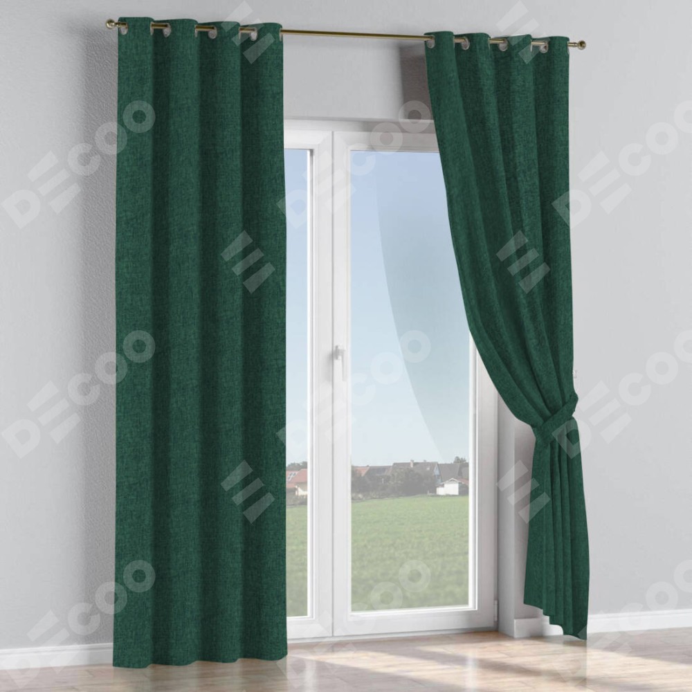 Комплект прямых штор, от производителя «Cortin», пошиты из ткани рогожка димаут тёмно-зелёный, артикул ткани 91022. Данная модель пошита на люверсах, комплектуется на выбор круглым карнизом и подходит для монтажа на стену или потолок. Прямые шторы на люверсах шьются по стандарту с коэффициентом 1/2 (на 100 см. ширины проёма 200 см. ширины ткани), отличительным преимуществом данной модели является простой способ монтажа. Достаточно повесить ее на трубу и штора готова!
