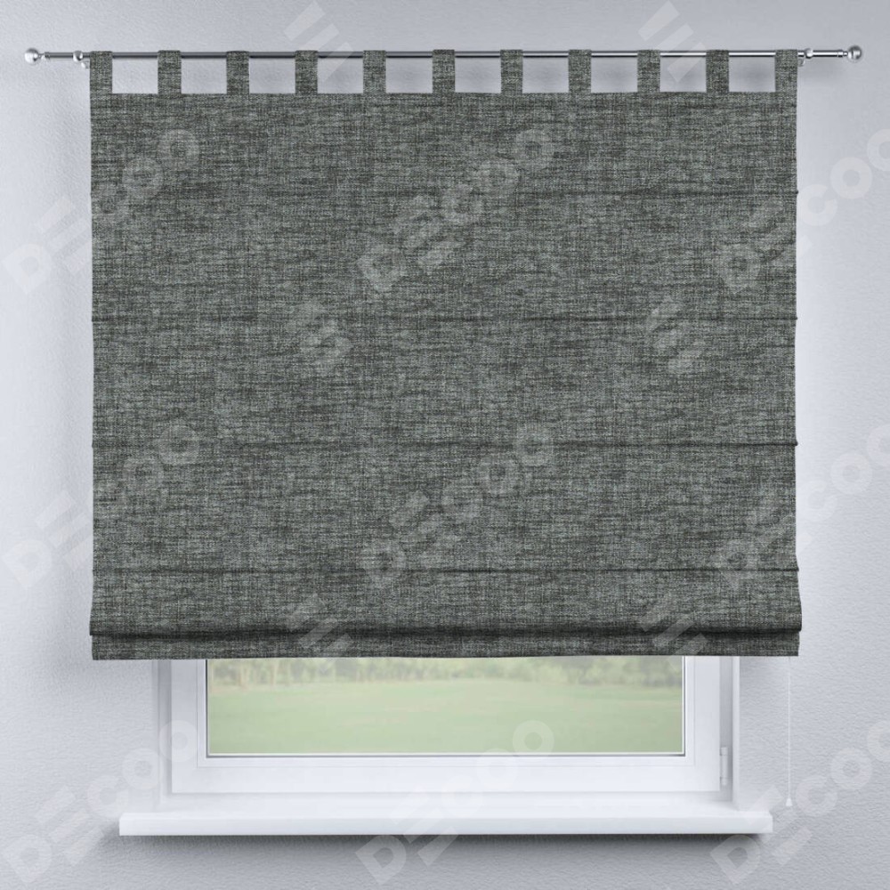 Римская штора производителя «Cortin», используется для проёма, пошита из ткани рогожка димаут тёмно-серый, артикул ткани 91029. Данная модель пошита на петлях, комплектуется на выбор круглым карнизом и подходит для монтажа на стену. Римская штора на петлях имеет простую систему регулировки высоты, отличительным преимуществом данной модели является простой способ монтажа. Достаточно повесить ее на трубу и штора готова!
