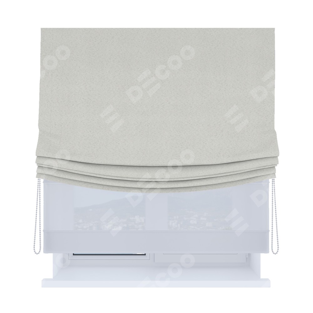 Двойная римская штора «День-ночь» от производителя Cortin предназначена для использования в проёмах. Эта штора уникальна тем, что состоит из двух полотен. На лицевой стороне находится однотонный блэкаут милк (артикул: 23), обеспечивающий эффективное затемнение. В комплект также входит вторая ткань — легкий белый тюль (артикул: V-01), который добавляет изящества и легкости оформлению окна. Кроме того, доступны и другие разновидности ткани тюль, выбор которых доступен по  ссылке .