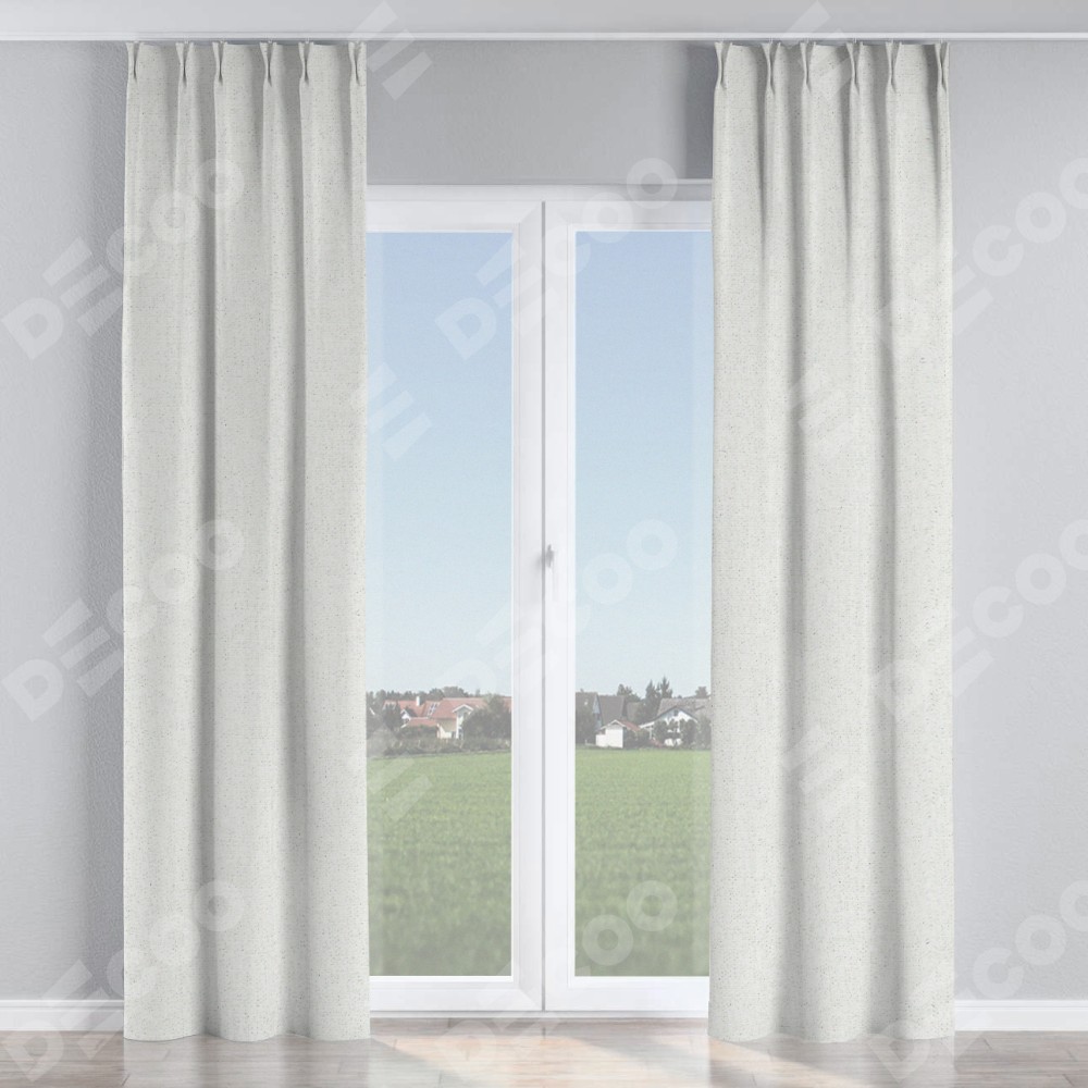 Комплект прямых штор, от производителя «Cortin», пошиты из ткани лён шампань, артикул ткани 91399. С изнаночной стороны в верхней части штор пристрачивается шторная лента с декоративными складками «Кустик». Для создания элегантных складок прямые шторы шьются по стандарту с коэффициентом 1:2 (на 100 см. ширины проёма 200 см. ширины ткани).