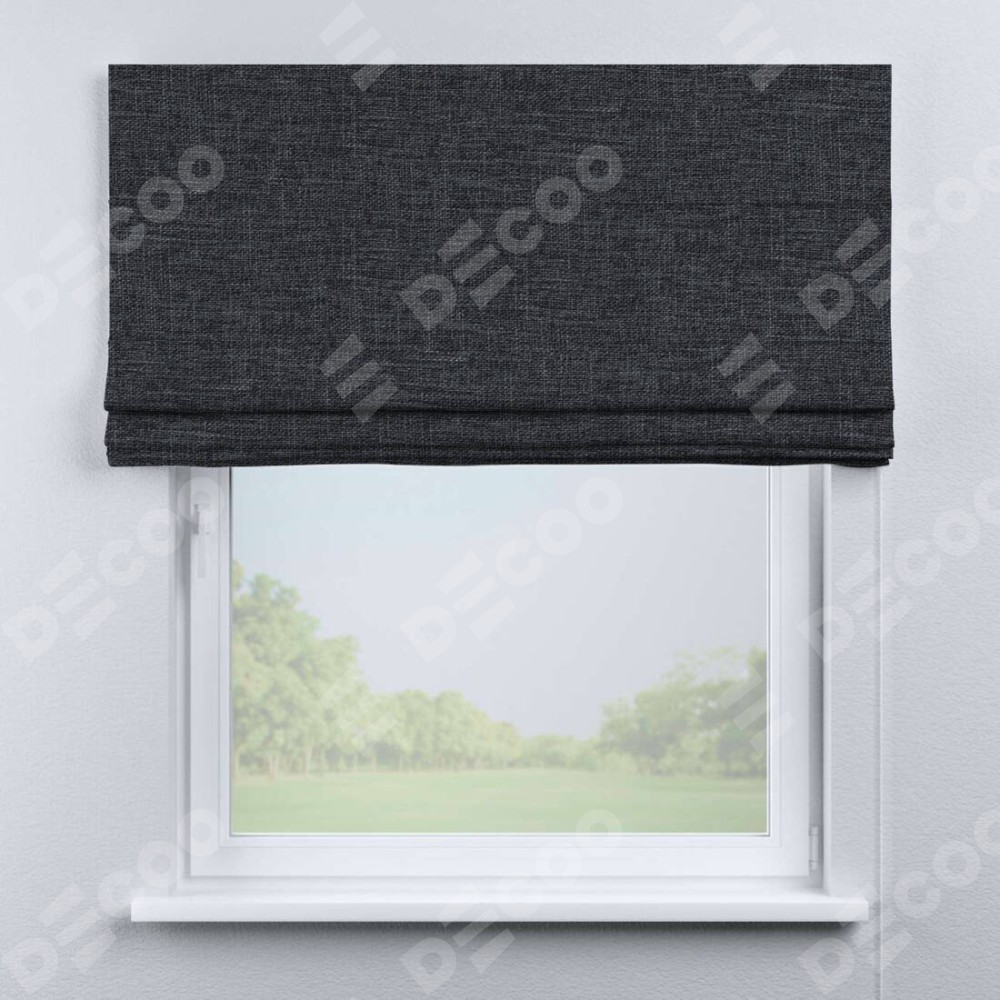 Классическая римская штора производителя «Cortin», пошита из ткани рогожка димаут графит, артикул: 90950. Имеет универсальный механизм и подходит для монтажа: на потолок, на стену и в нишу.