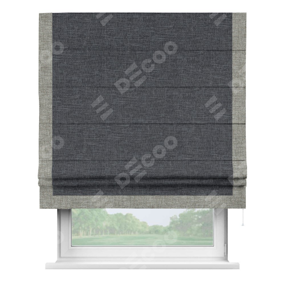 Римская штора «Кортин» для проёма, рогожка димаут графит, с кантом Виктория
