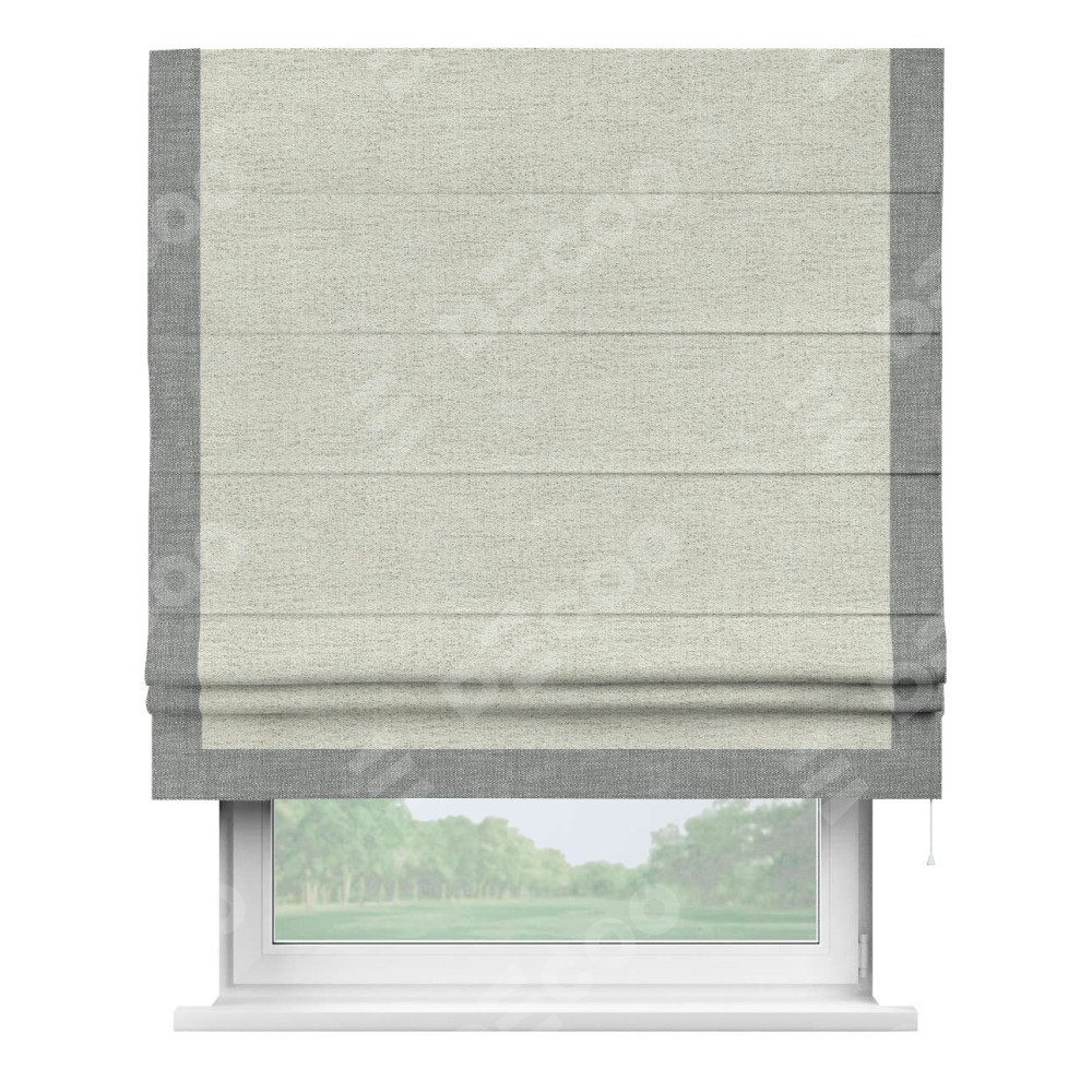 Римская штора «Кортин» для проёма, рогожка димаут серо-бежевый, с кантом Виктория
