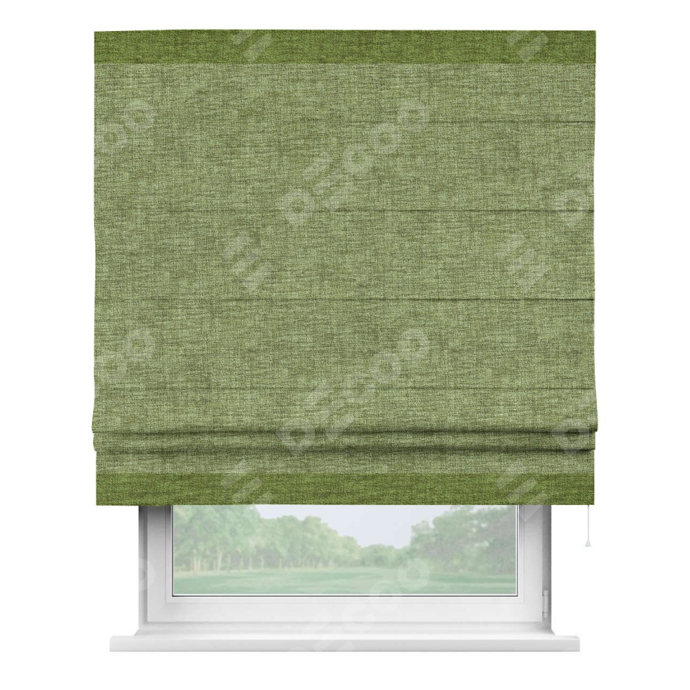 Римская штора «Кортин» для проёма, рогожка димаут травяной, с кантом Горизонт