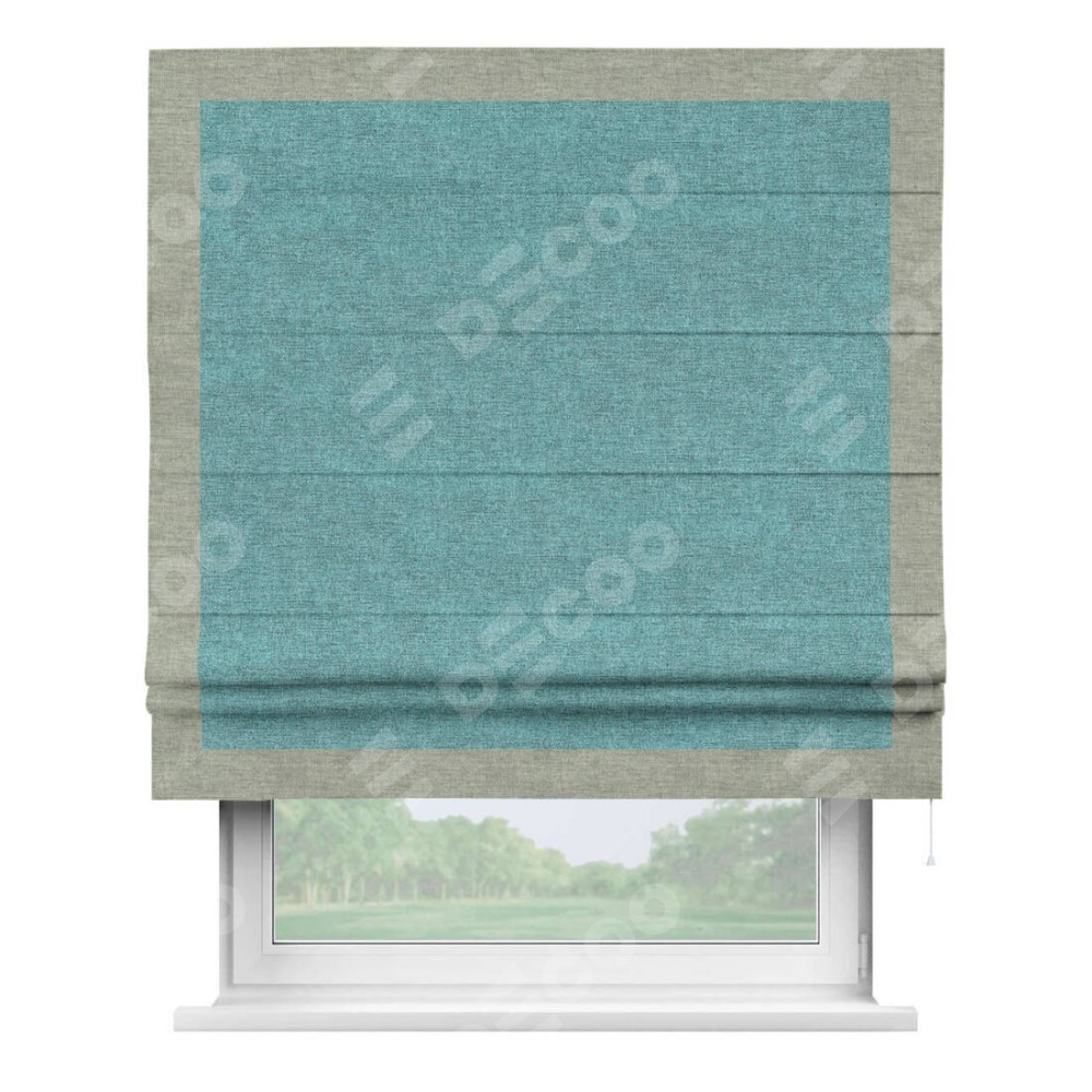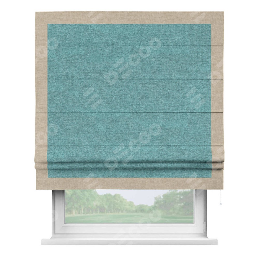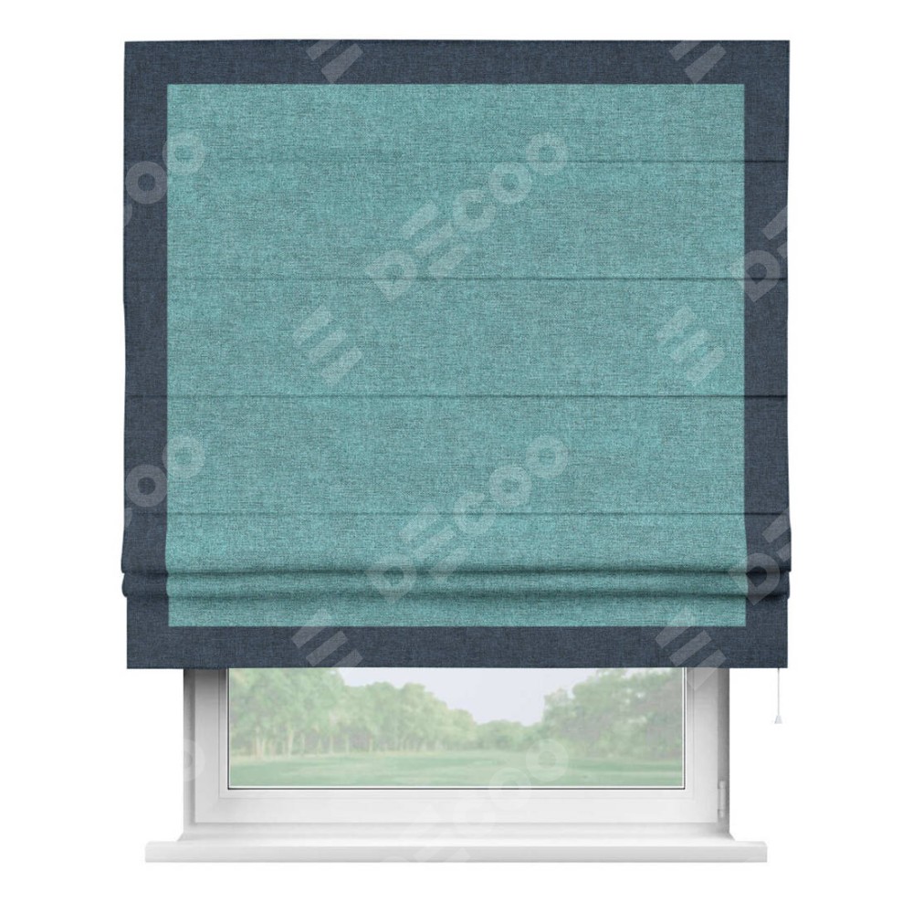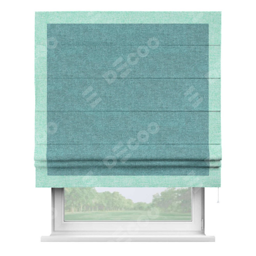 Римская штора «Кортин» с кантом Чесс, для проема, ткань лён кашемир бирюзовый