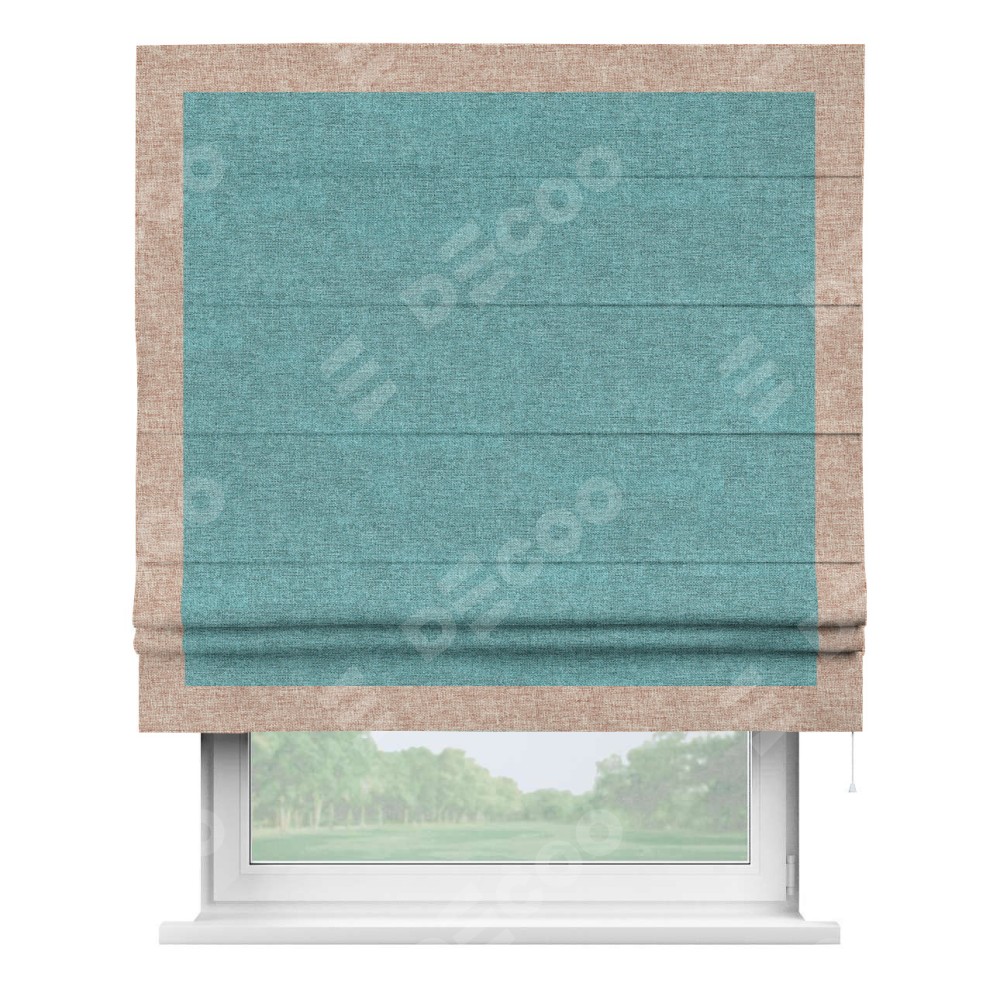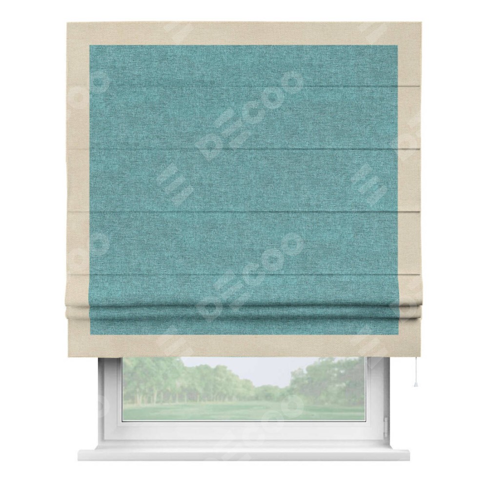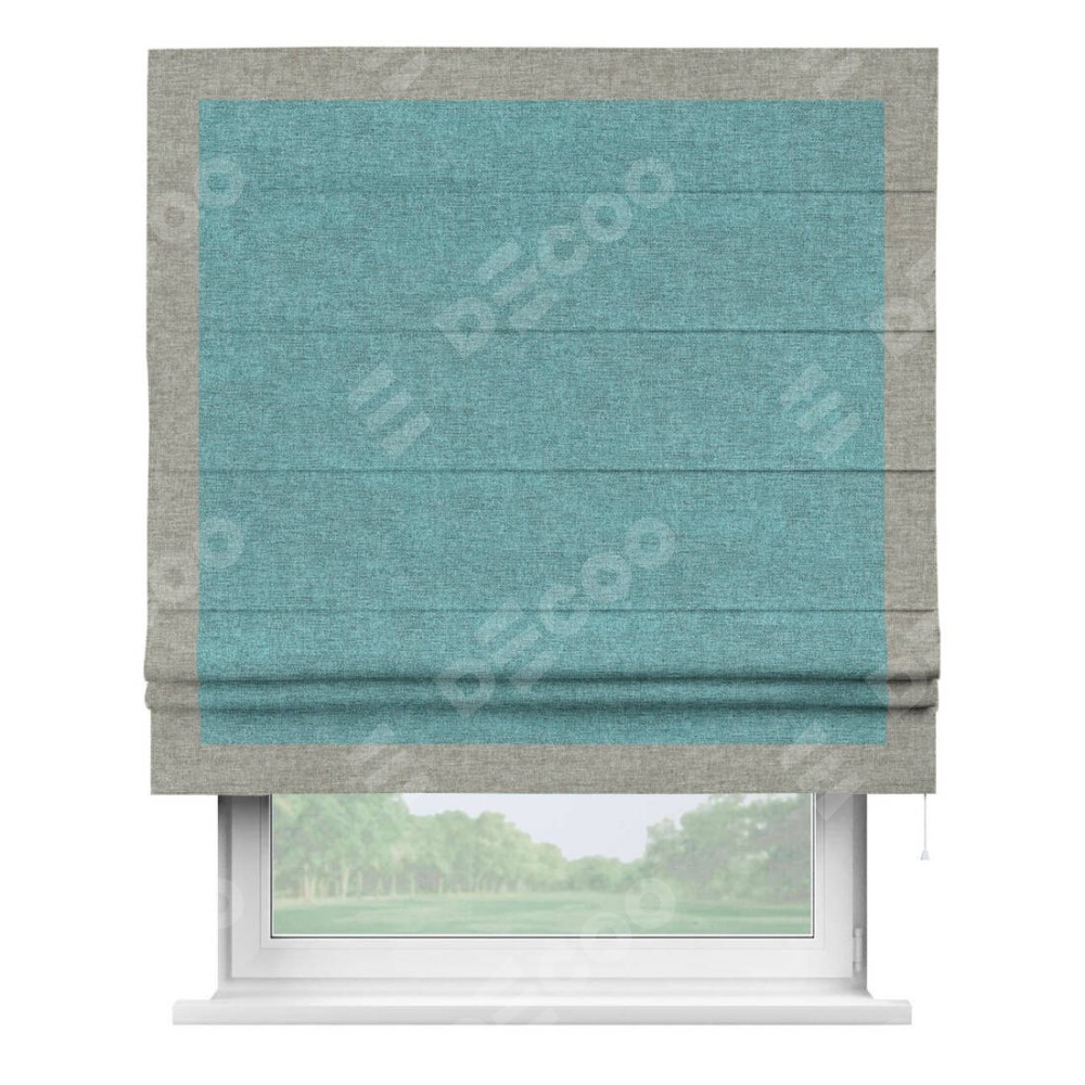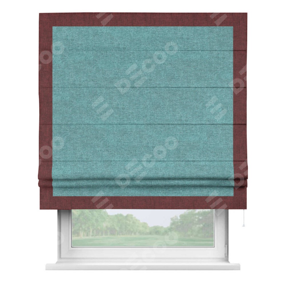 Римская штора «Кортин» с кантом Чесс, для проема, ткань лён кашемир бирюзовый