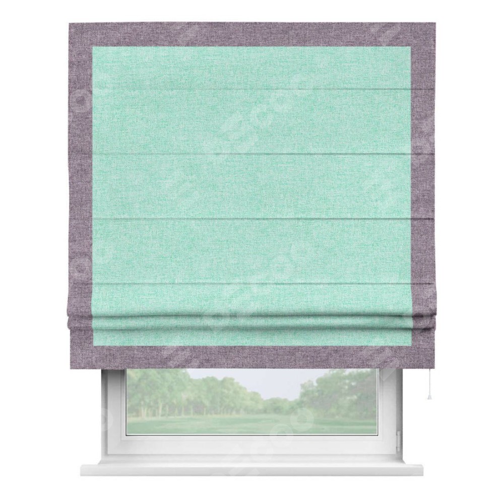 Римская штора «Кортин» для проёма, лён кашемир мятный, с кантом Чесс