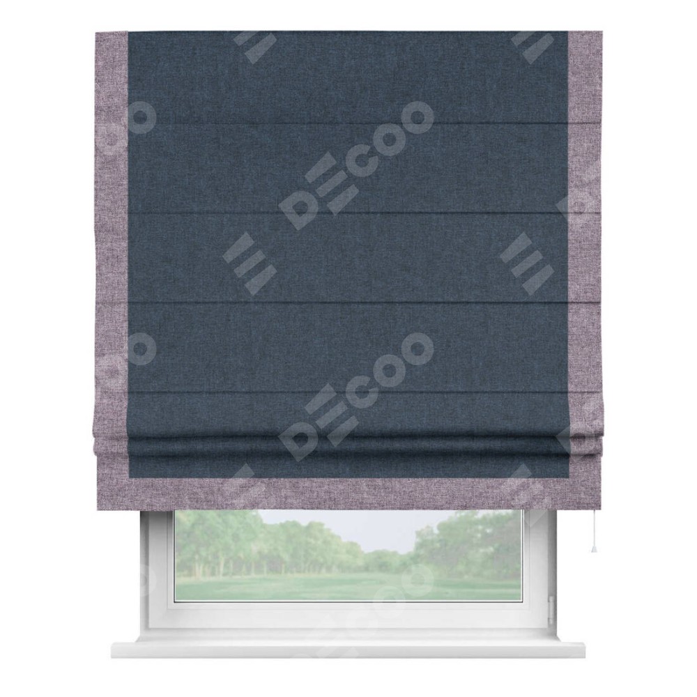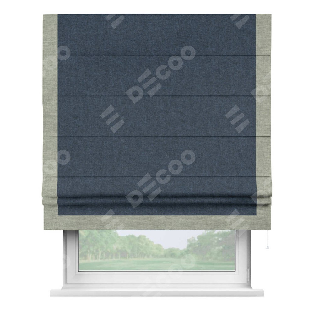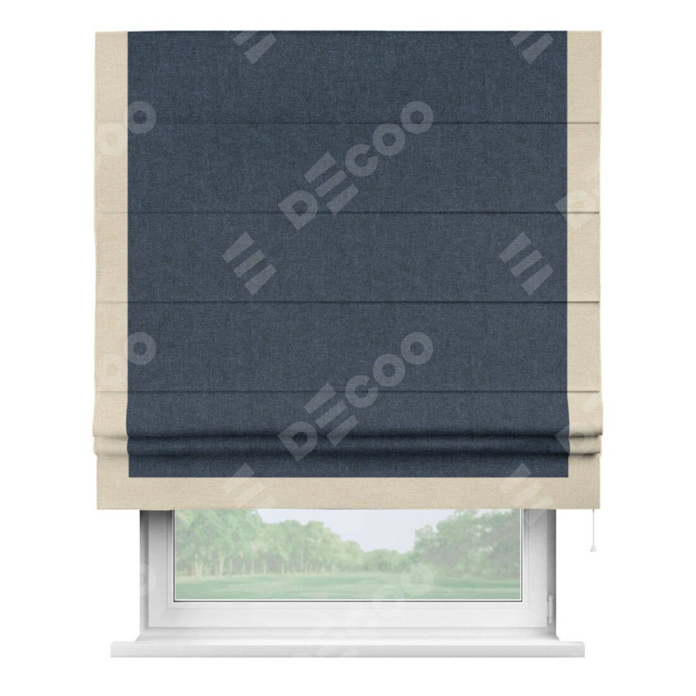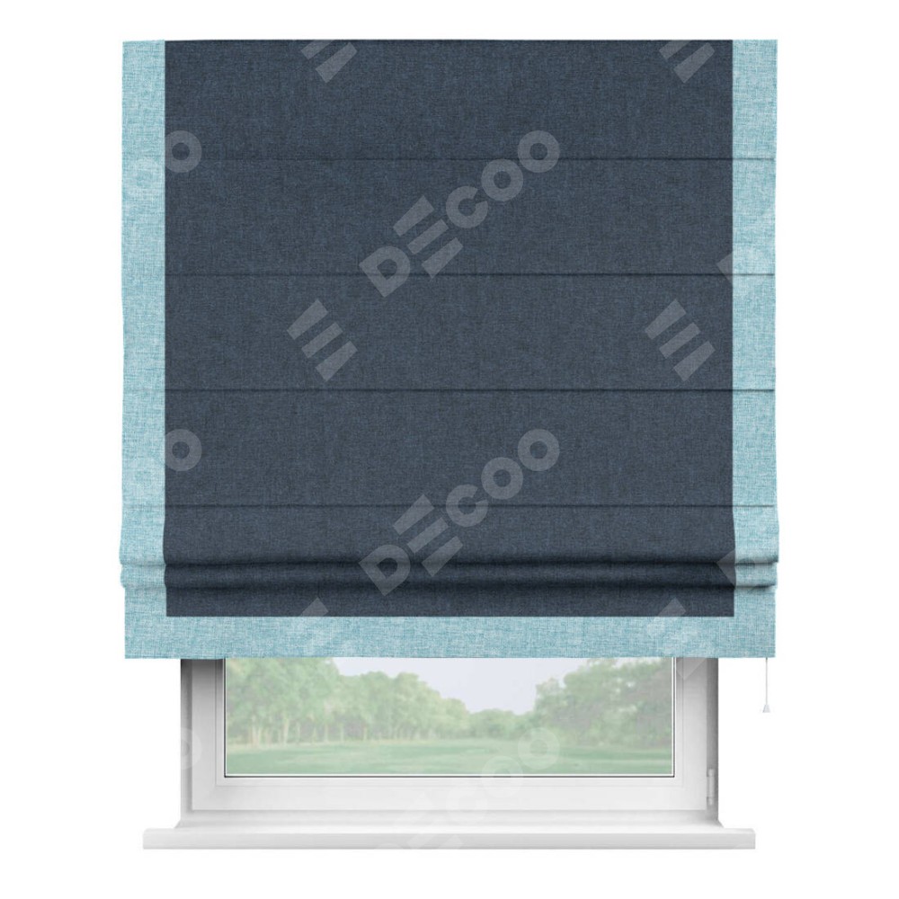 Римская штора «Кортин» для проёма, лён кашемир синий, с кантом Виктория