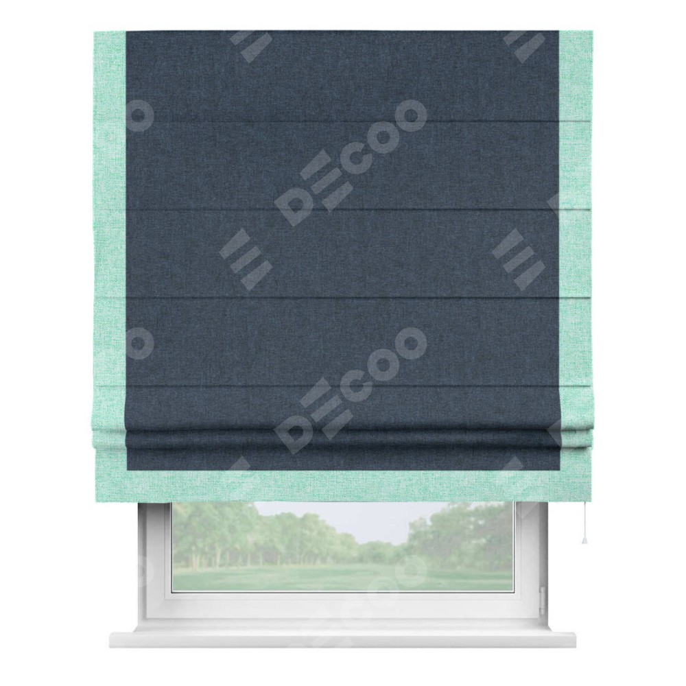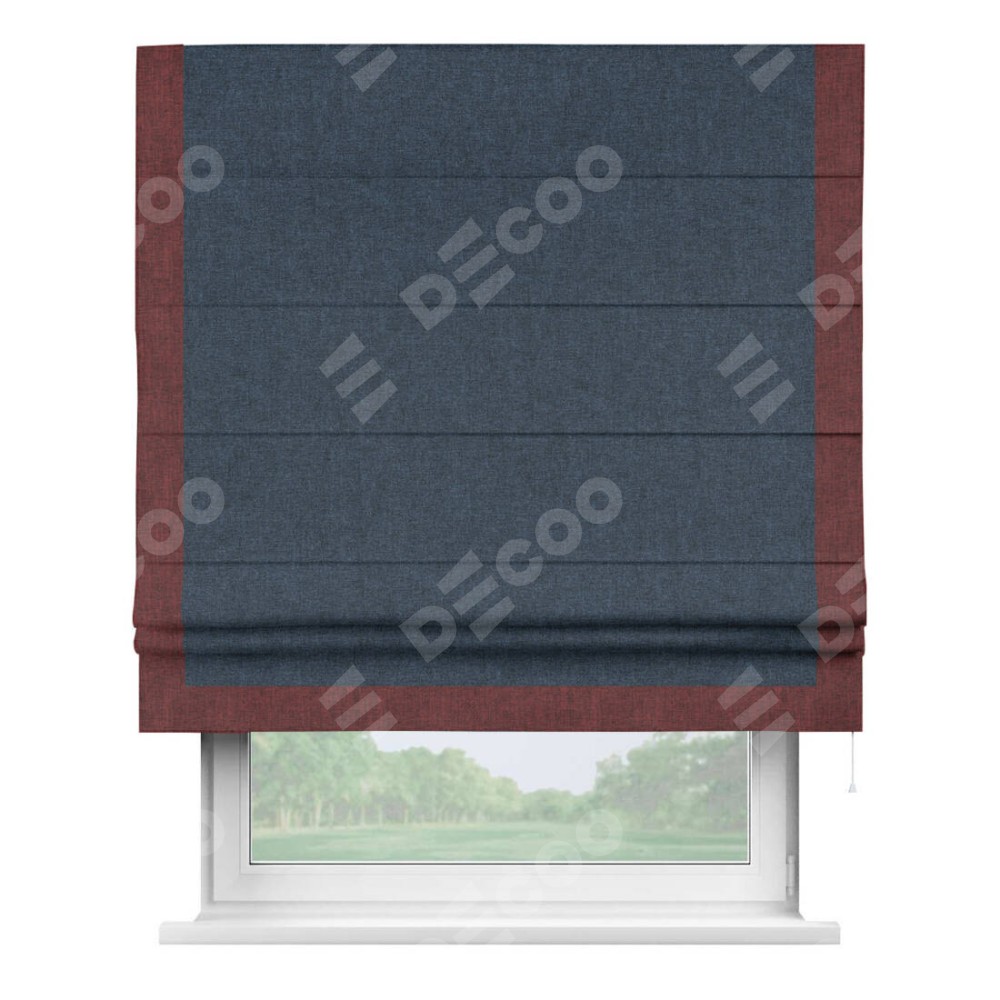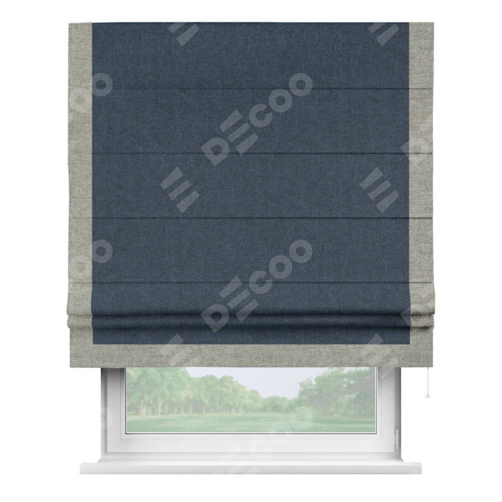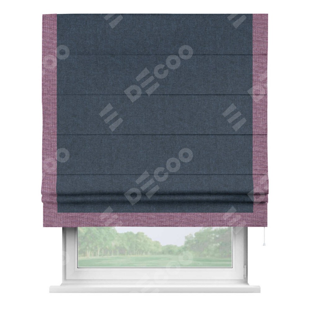 Римская штора «Кортин» для проёма, лён кашемир синий, с кантом Виктория