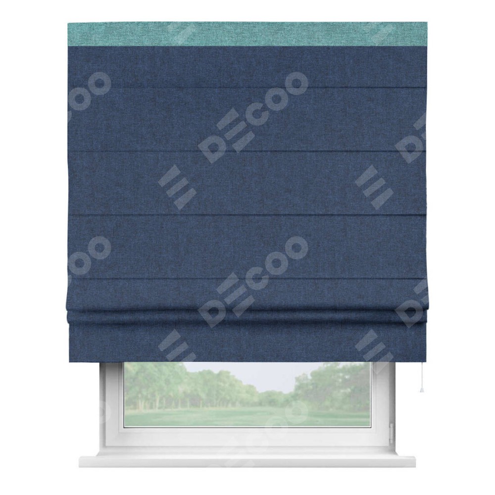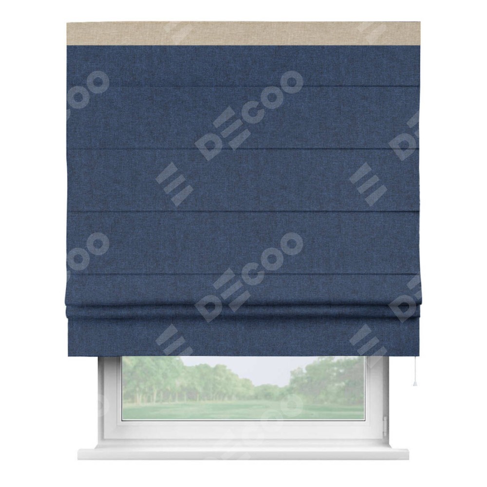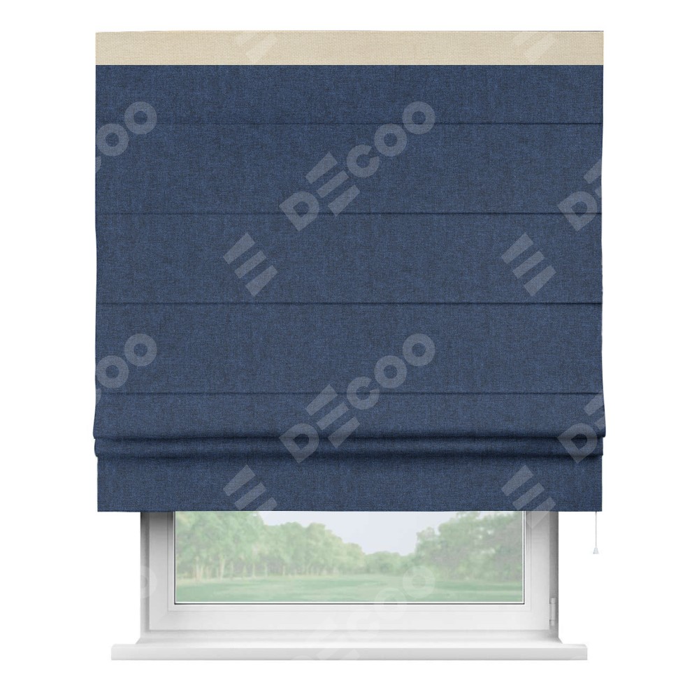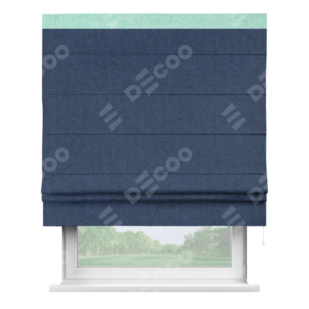Римская штора «Кортин» для проёма, лён кашемир тёмно-синий, с кантом Кинг
