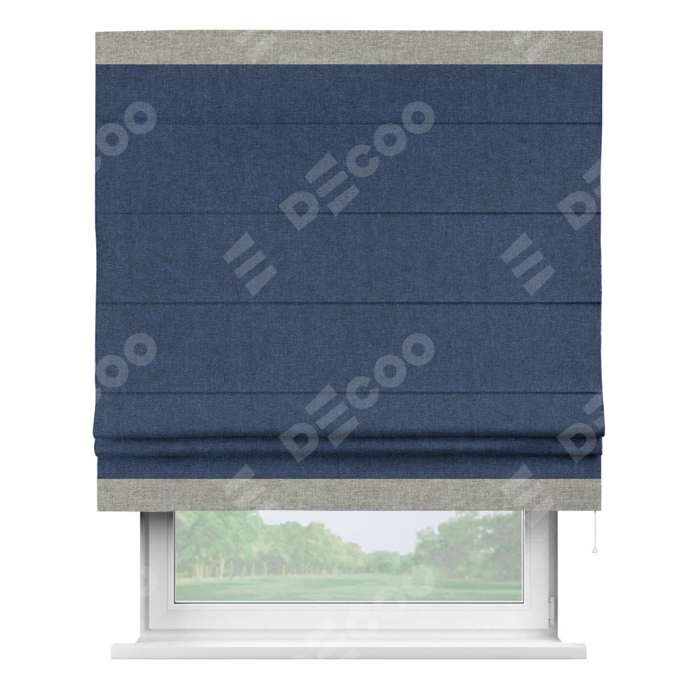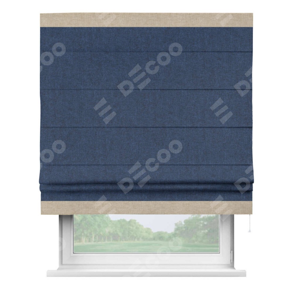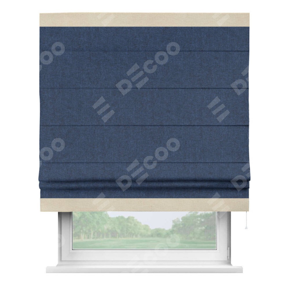 Римская штора «Кортин» для проёма, лён кашемир тёмно-синий, с кантом Горизонт