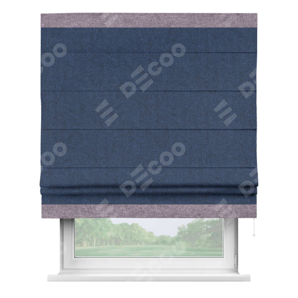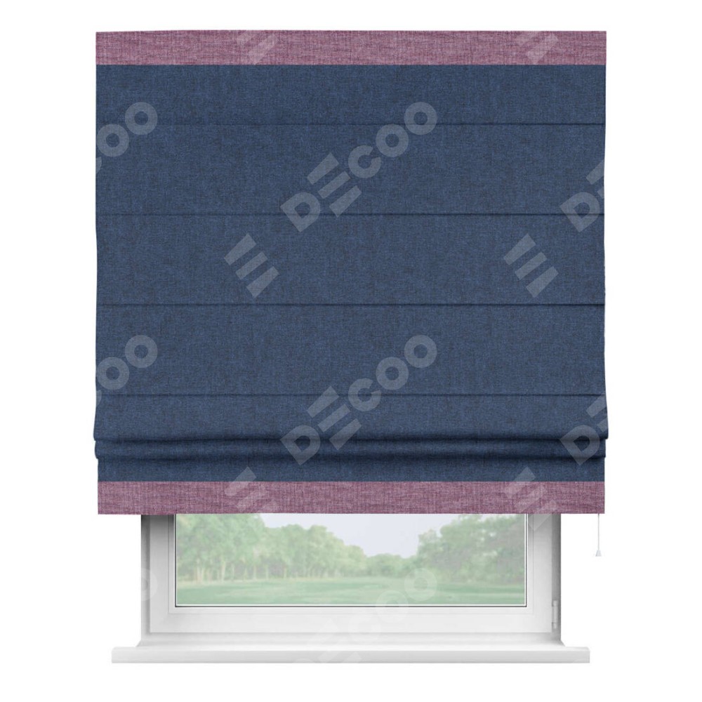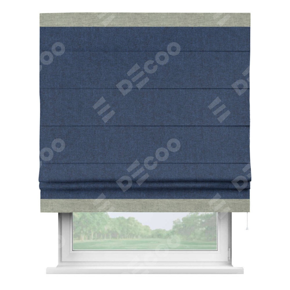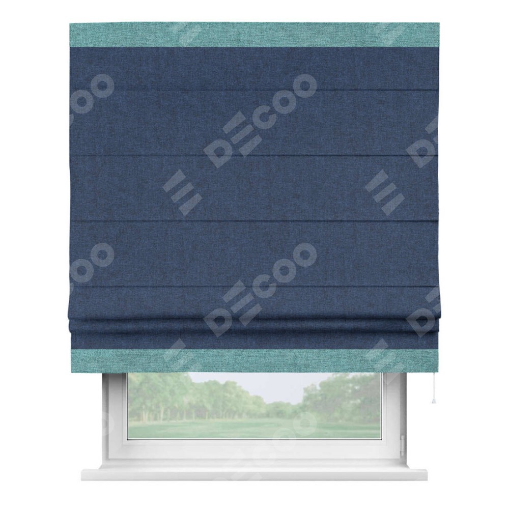 Римская штора «Кортин» для проёма, лён кашемир тёмно-синий, с кантом Горизонт