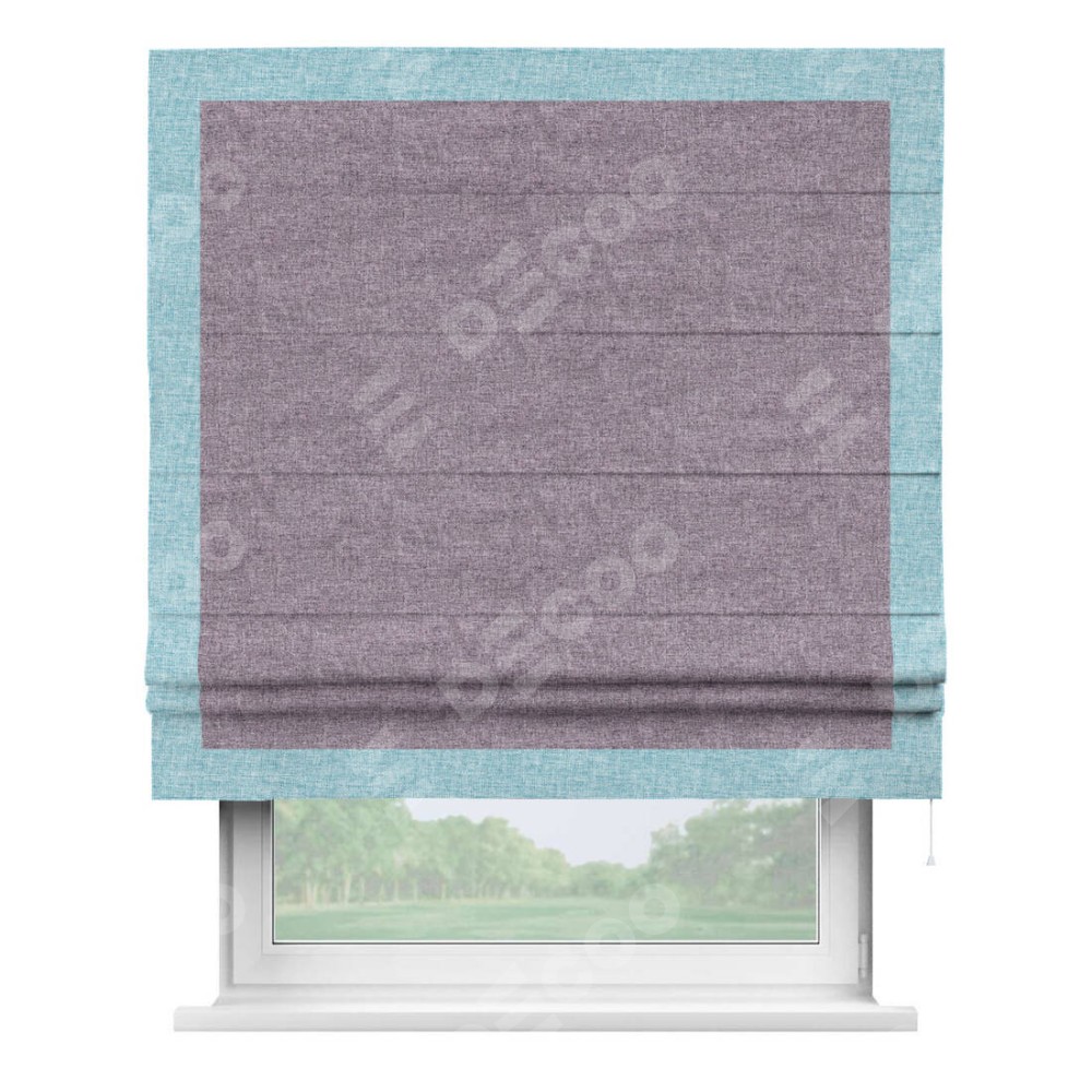 Римская штора «Кортин» для проёма, лён кашемир фиолетовый, с кантом Чесс