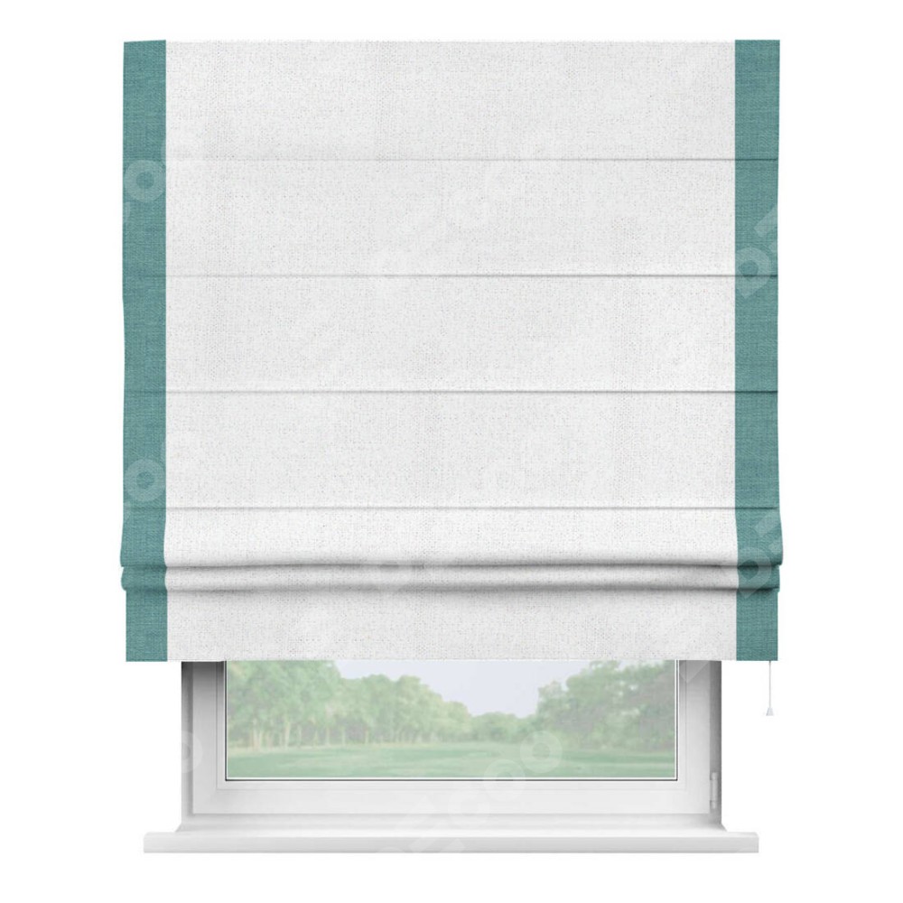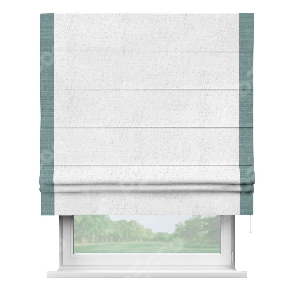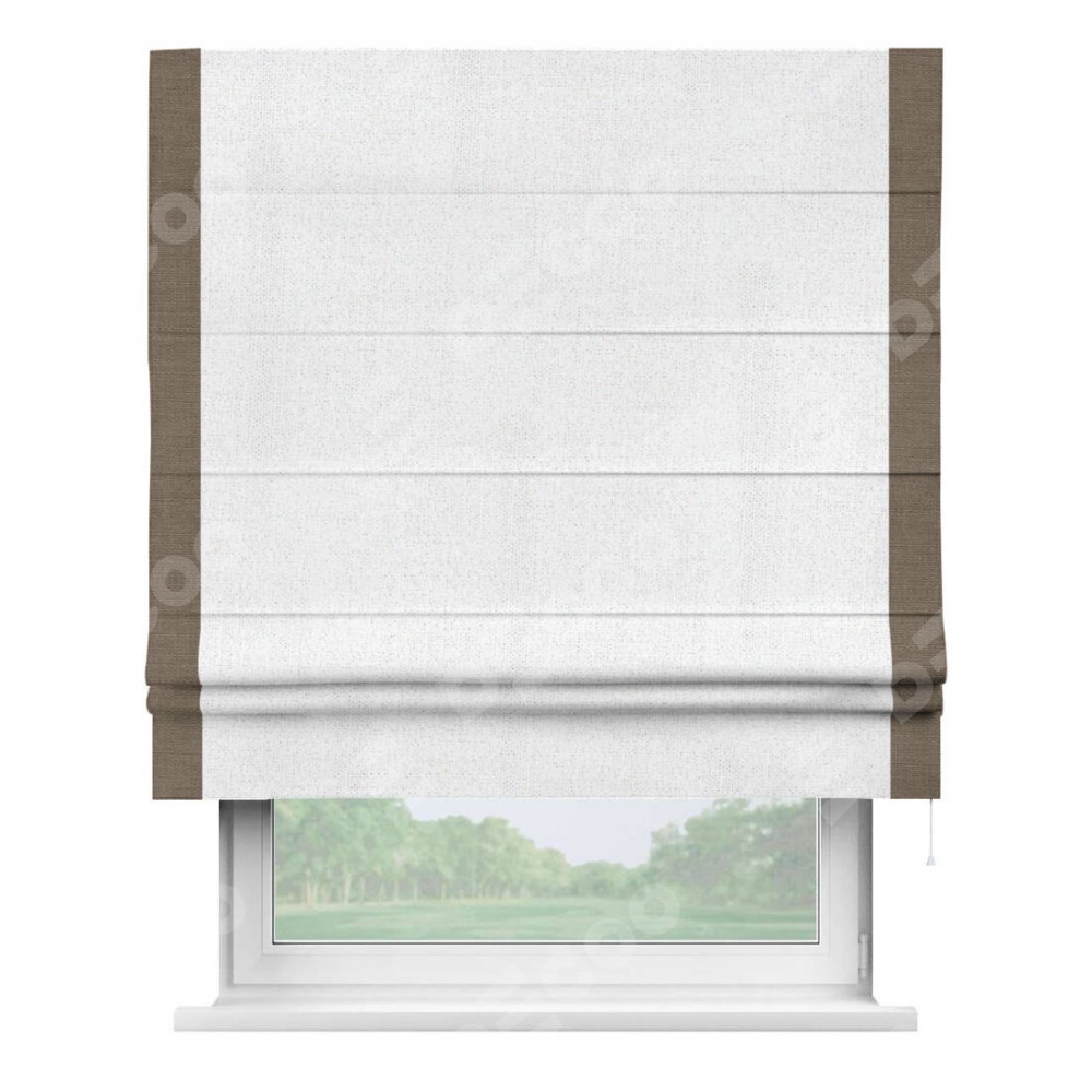 Римская штора «Кортин» для проема, лён белоснежный, с кантом Стрим Дуо