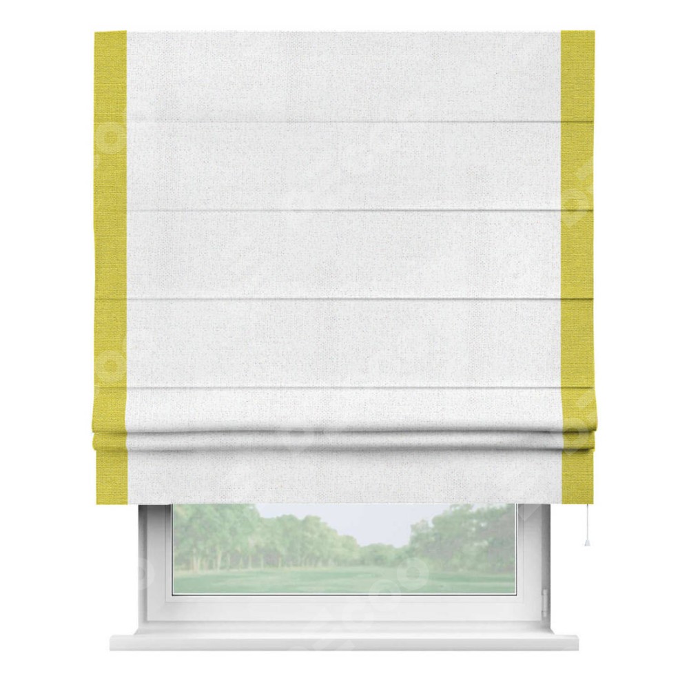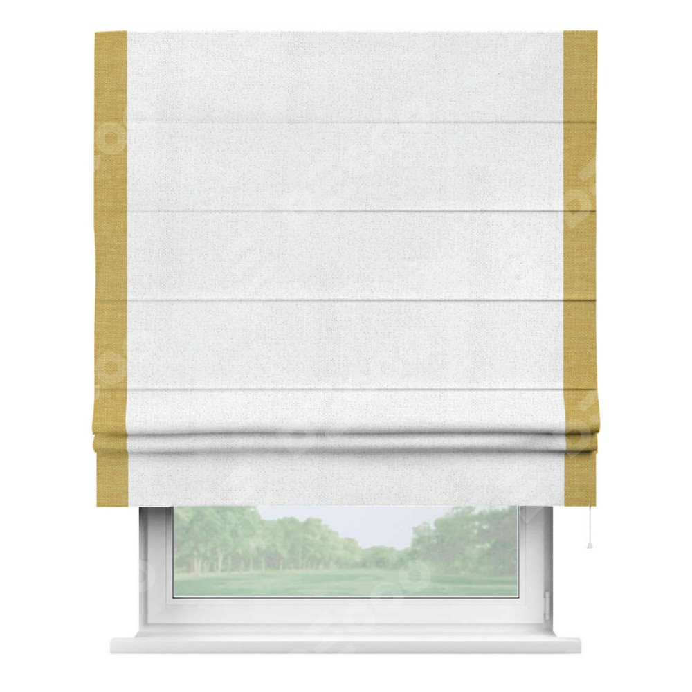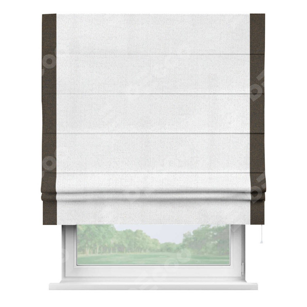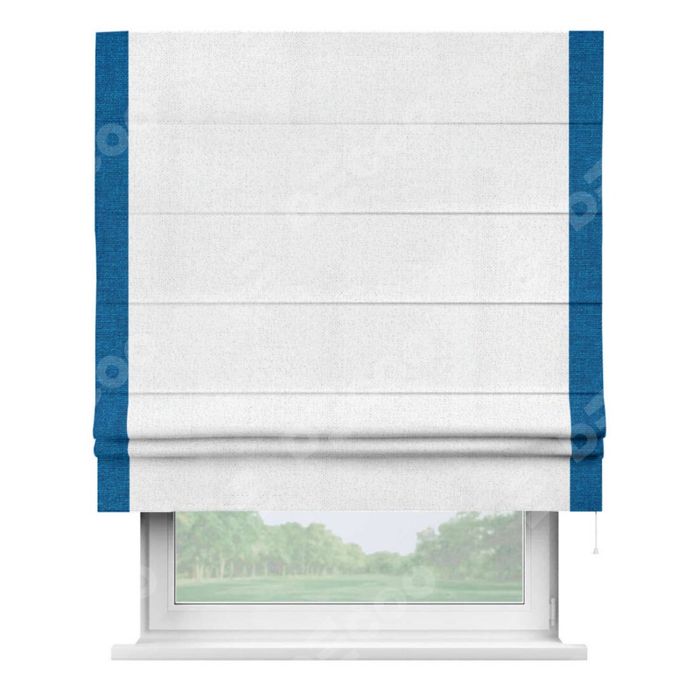 Римская штора «Кортин» для проема, лён белоснежный, с кантом Стрим Дуо