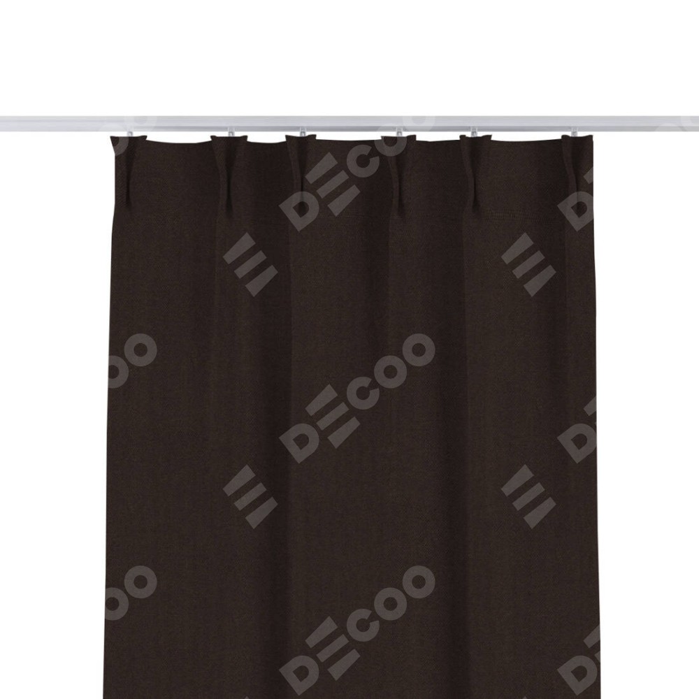 Комплект прямых штор, от производителя «Cortin», пошиты из ткани лён димаут венге, артикул ткани 91001. С изнаночной стороны в верхней части штор пристрачивается шторная лента с декоративными складками «Кустик». Для создания элегантных складок прямые шторы шьются по стандарту с коэффициентом 1:2 (на 100 см. ширины проёма 200 см. ширины ткани).