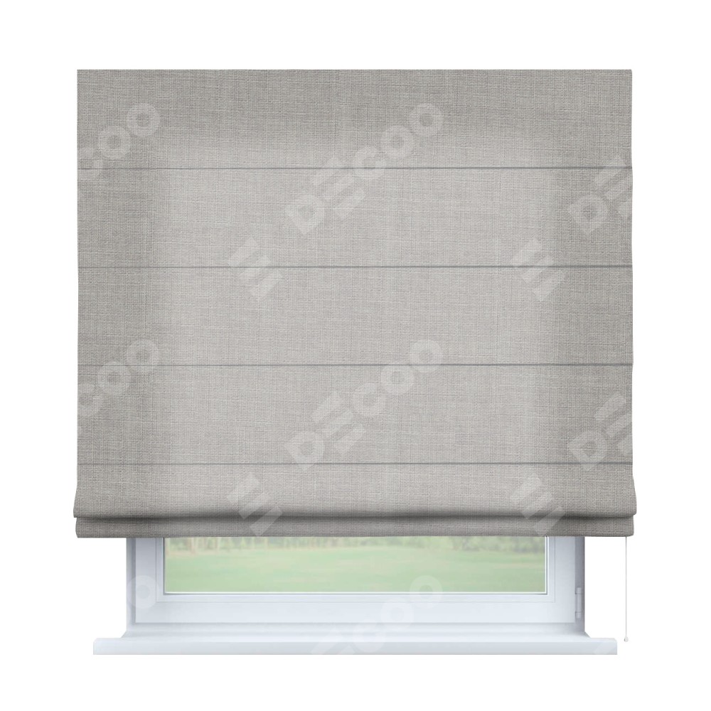 Классическая римская штора производителя «Cortin», пошита из ткани лён серый, артикул: 91410. Имеет универсальный механизм и подходит для монтажа: на потолок, на стену и в нишу.