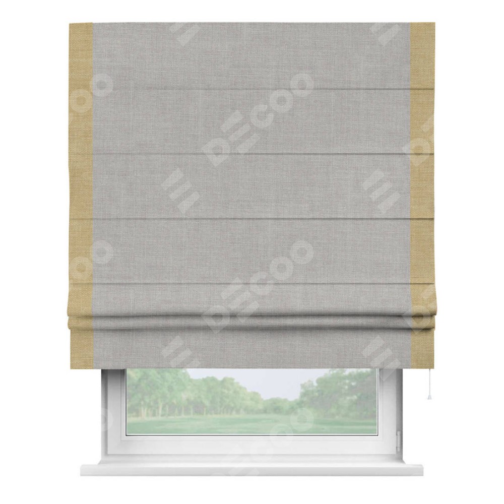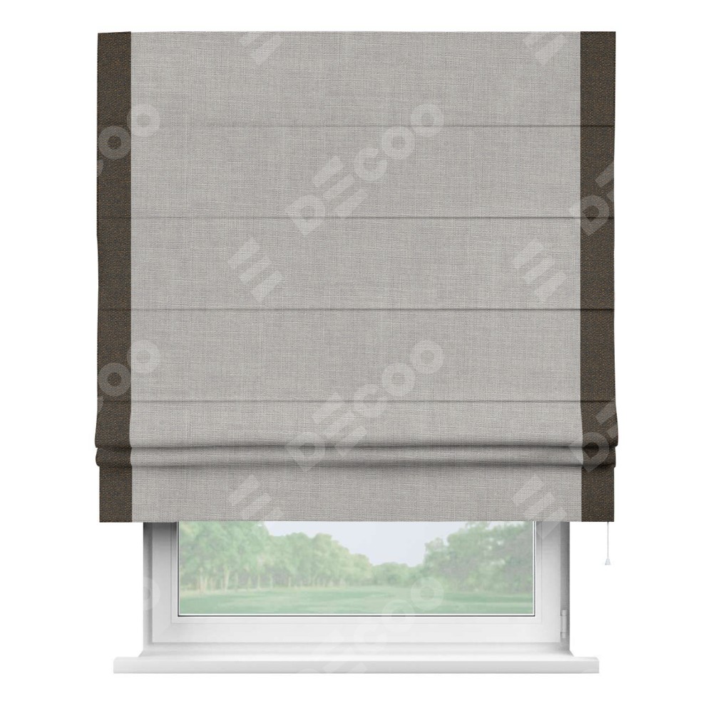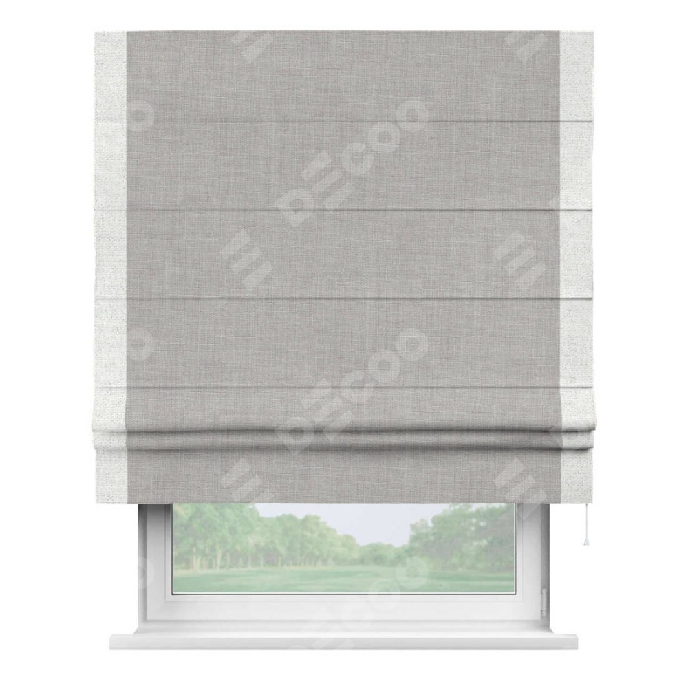 Римская штора «Кортин» для проёма, лён серый, с кантом Стрим Дуо
