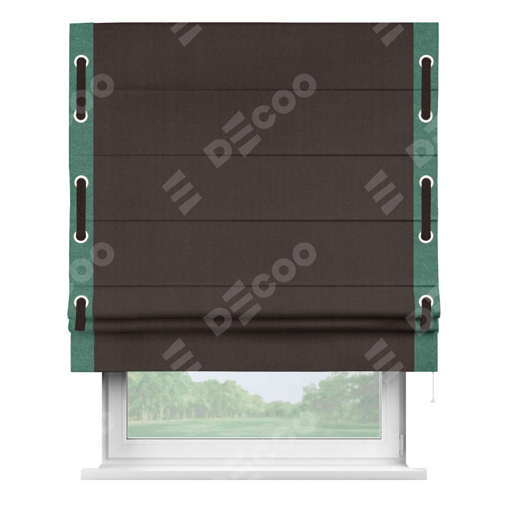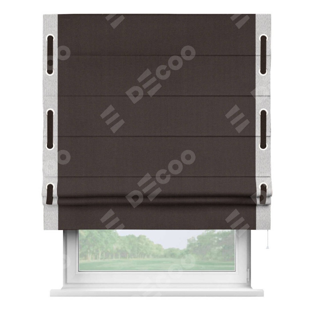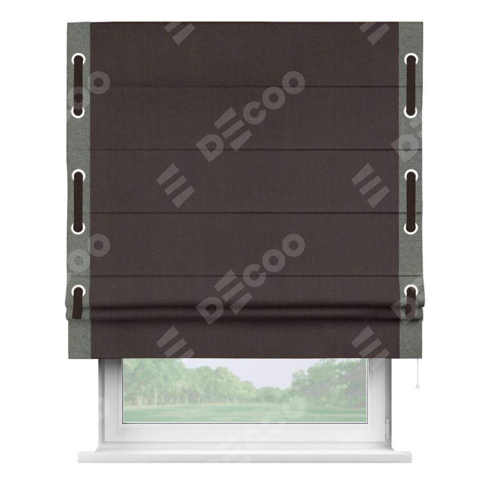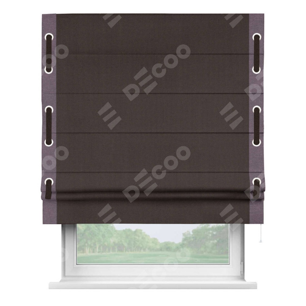 Римская штора «Кортин» для проема, лён димаут венге с кантом Стрим Дуо (люверсы с пояском)