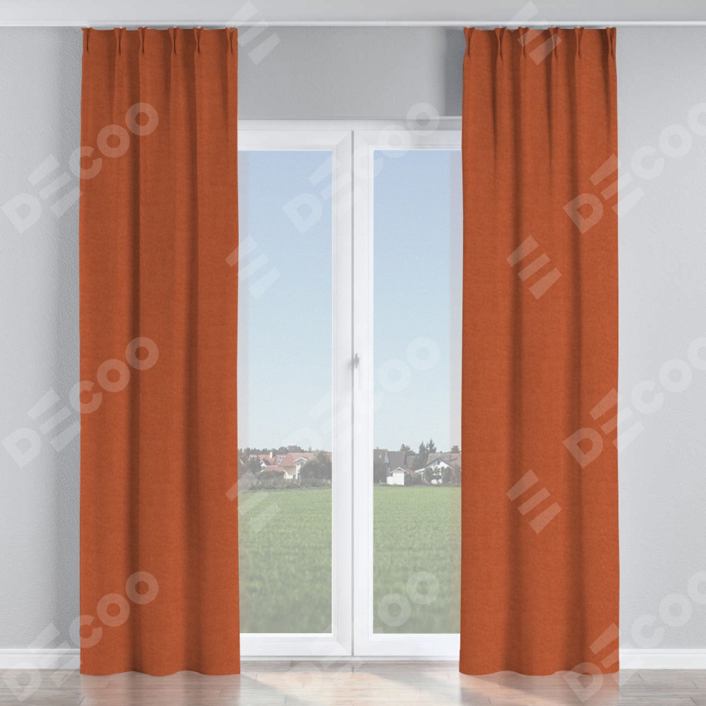 Комплект прямых штор, от производителя «Cortin», пошиты из ткани канвас терракотовый, артикул ткани v-107. С изнаночной стороны в верхней части штор пристрачивается шторная лента с декоративными складками «Кустик». Для создания элегантных складок рекомендуемый коэффициент 1:2 (на 100 см. ширины проёма 200 см. ширины ткани). Важно! Ширина штор указана без учёта коэффициента сборки!