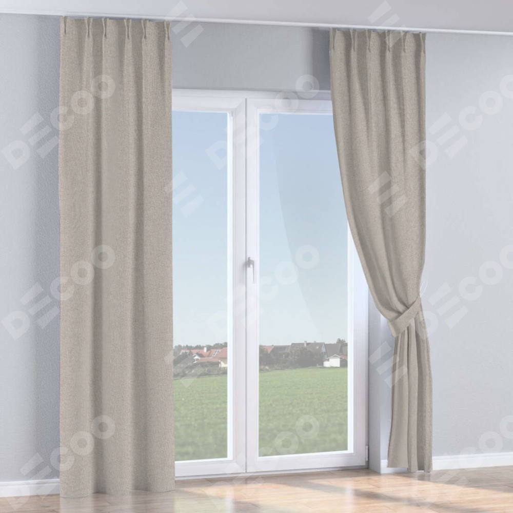 Комплект штор лён димаут серо-бежевый, на тесьме «Кустик»