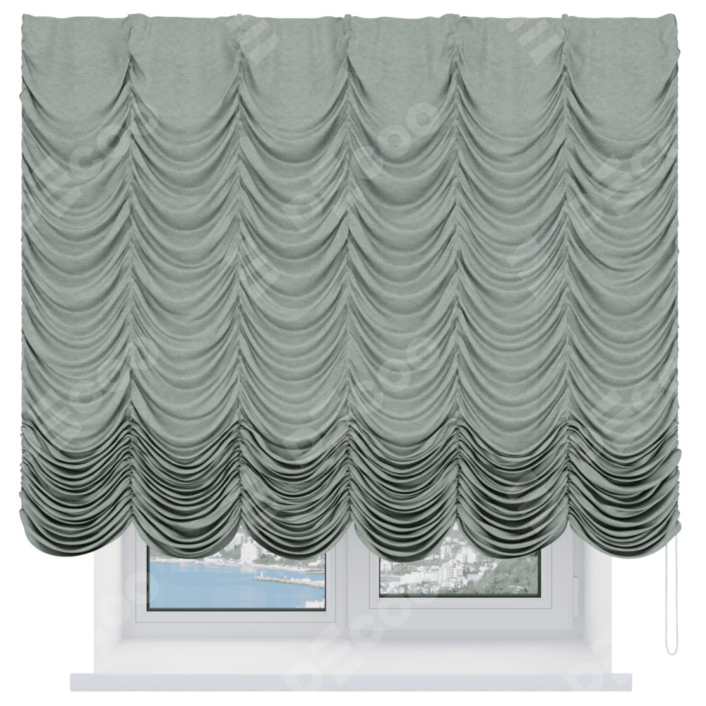 Французская штора производителя «Cortin», используется для проёма, пошита из ткани лён кашемир серый new, артикул ткани 21618. Имеет универсальный механизм и подходит для монтажа: на потолок и на стену.