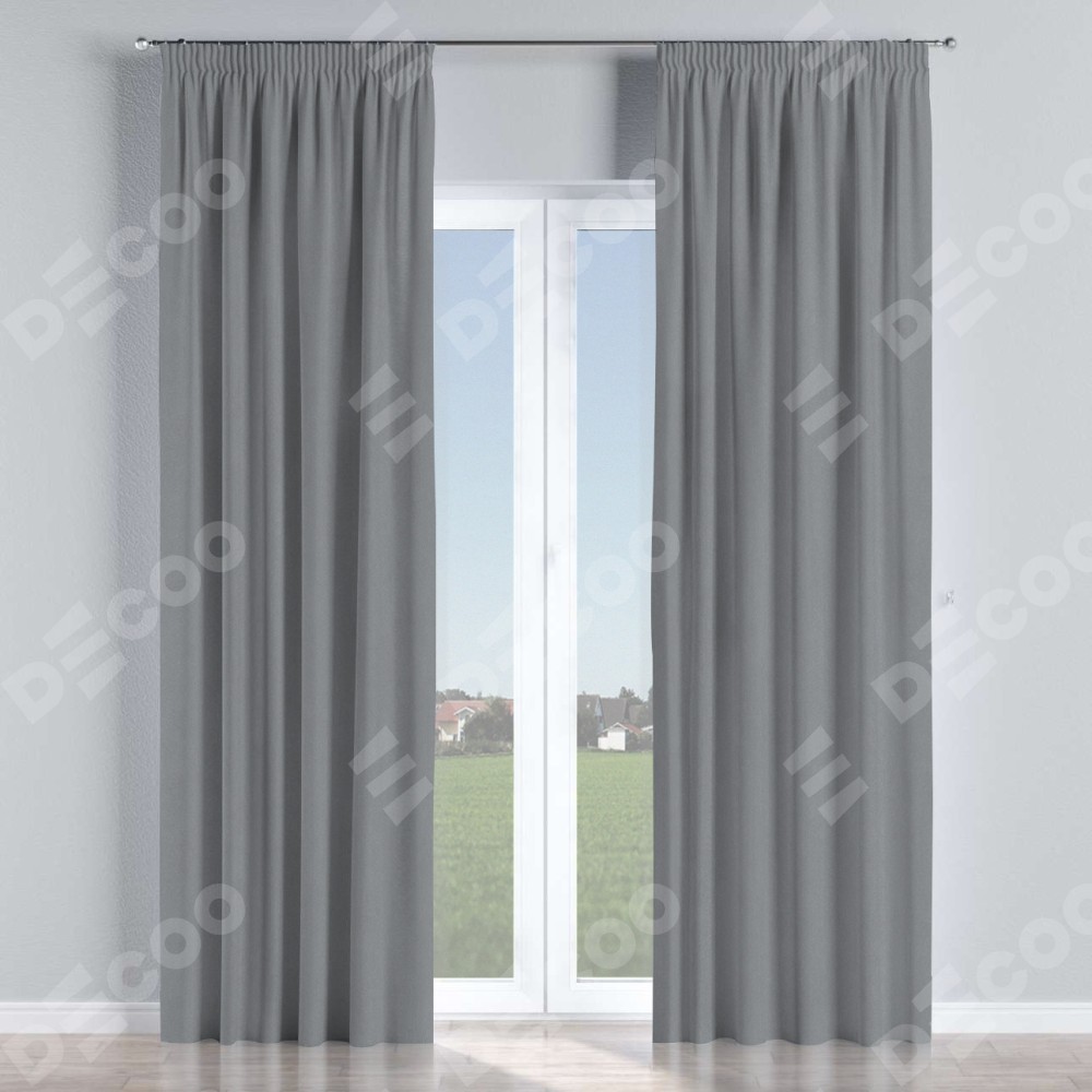 Комплект прямых штор, от производителя «Cortin», пошиты из ткани однотонный блэкаут серый, артикул ткани 146436. С изнаночной стороны в верхней части штор пристрачивается шторная лента с декоративными складками «Карандаш». Для создания элегантных складок рекомендуемый коэффициент 1:2 (на 100 см. ширины проёма 200 см. ширины ткани). Важно! Ширина штор указана без учёта коэффициента сборки!