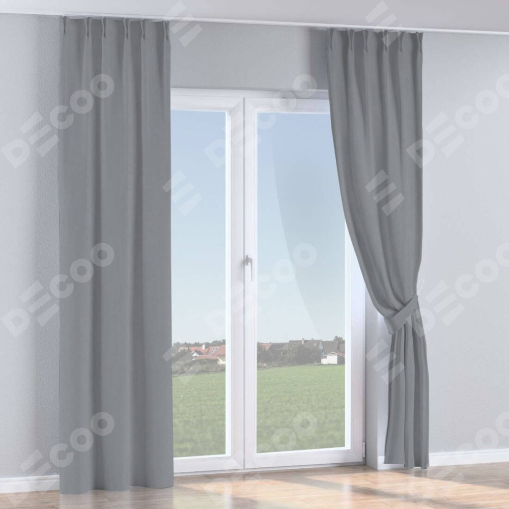 Комплект прямых штор, от производителя «Cortin», пошиты из ткани однотонный блэкаут серый, артикул ткани 146436. С изнаночной стороны в верхней части штор пристрачивается шторная лента с декоративными складками «Кустик». Для создания элегантных складок рекомендуемый коэффициент 1:2 (на 100 см. ширины проёма 200 см. ширины ткани). Важно! Ширина штор указана без учёта коэффициента сборки!