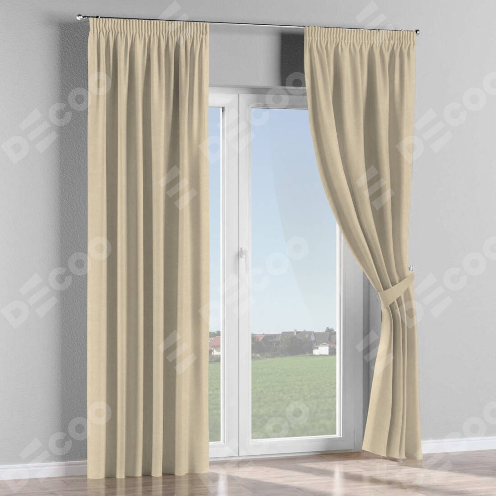 Комплект прямых штор, от производителя «Cortin», пошиты из ткани однотонный блэкаут кофейно-бежевый, артикул ткани 91566−1. С изнаночной стороны в верхней части штор пристрачивается шторная лента с декоративными складками «Карандаш». Для создания элегантных складок рекомендуемый коэффициент 1:2 (на 100 см. ширины проёма 200 см. ширины ткани). Важно! Ширина штор указана без учёта коэффициента сборки!