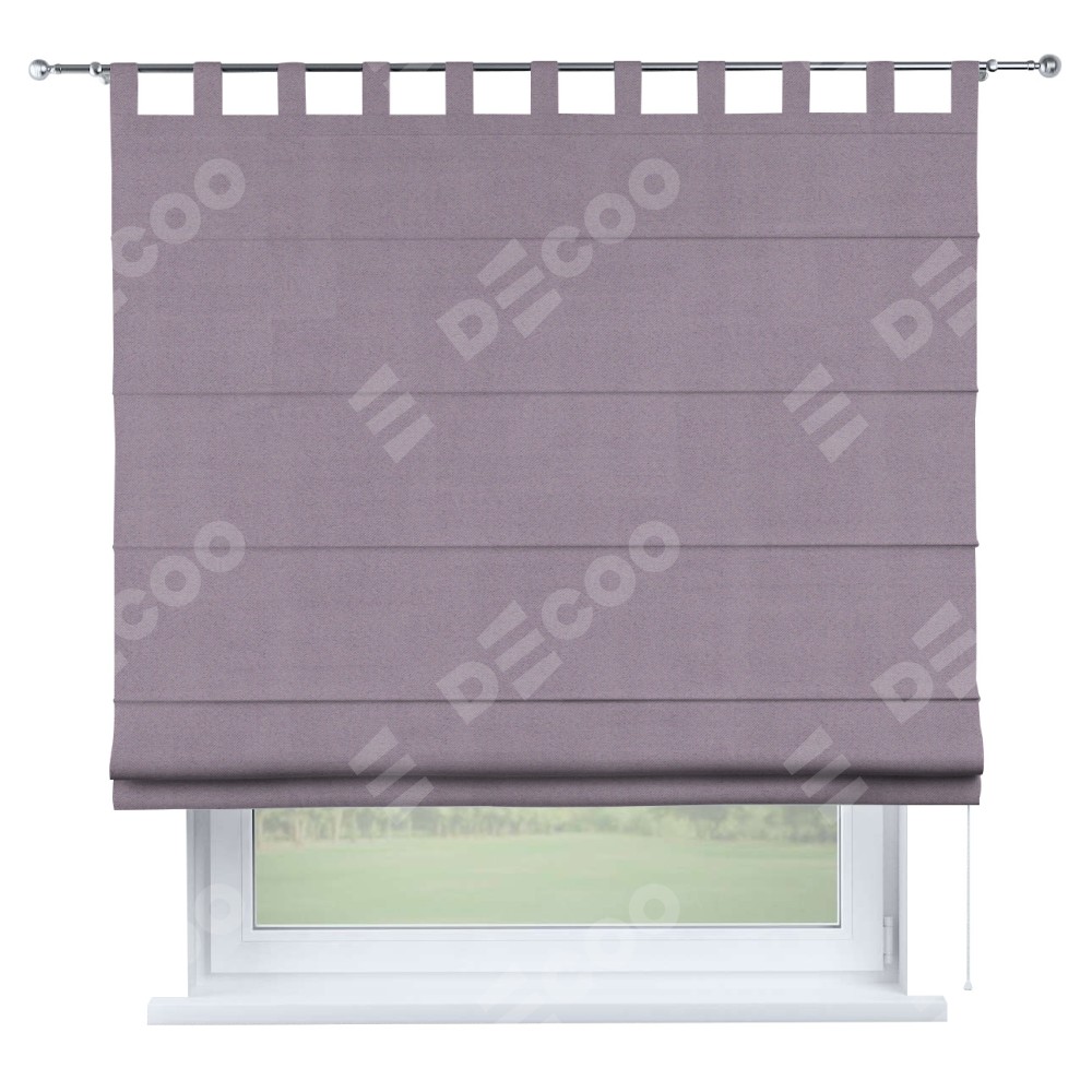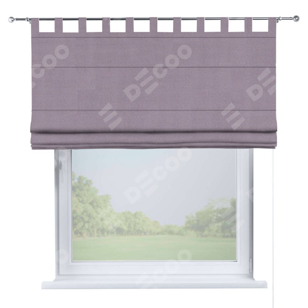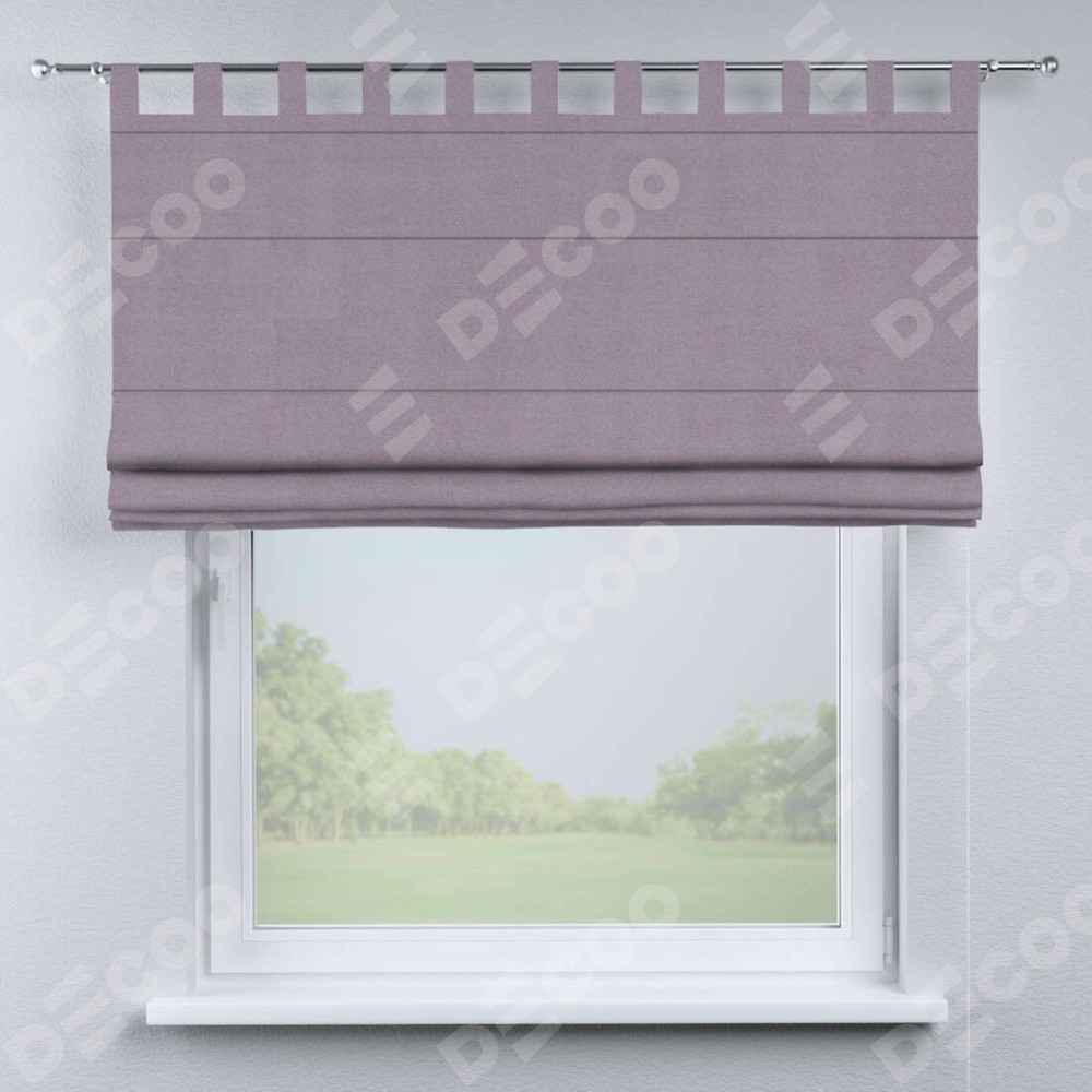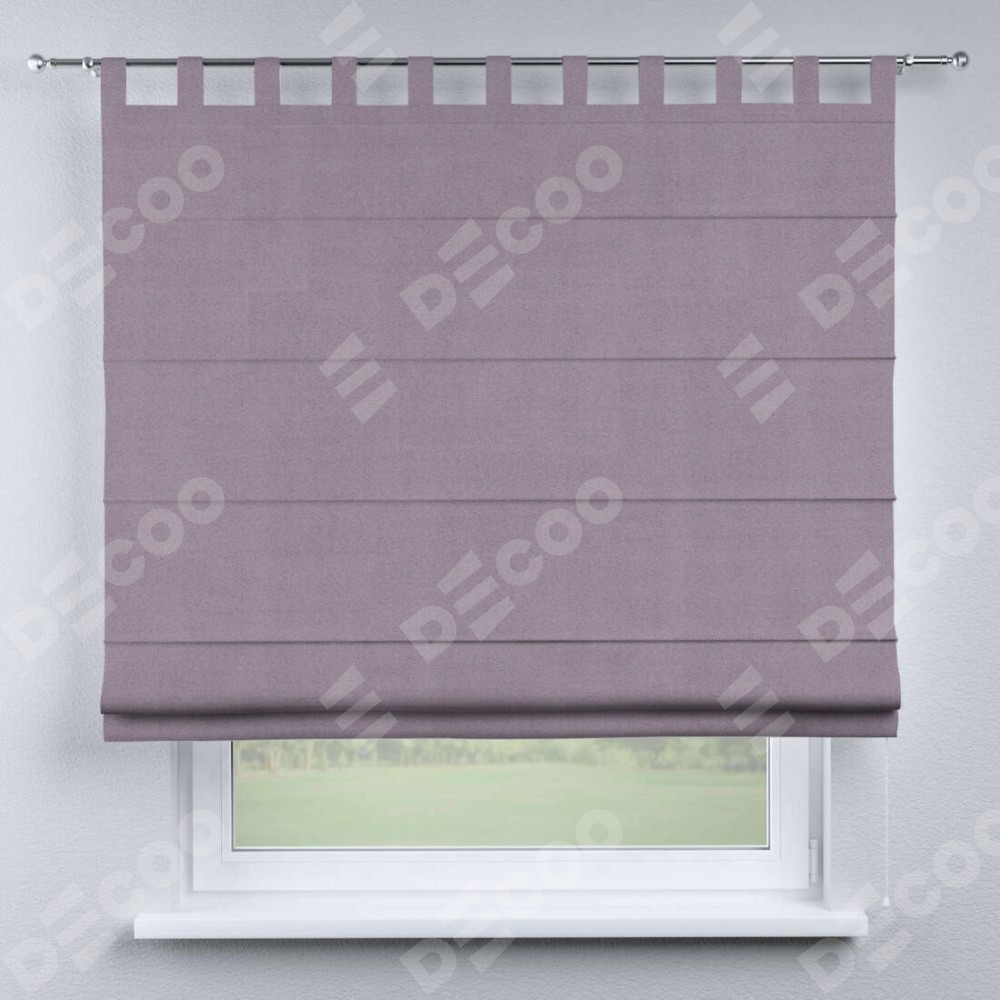 Римская штора производителя «Cortin», используется для проёма, пошита из ткани блэкаут однотонный лиловый, артикул ткани 91577. Данная модель пошита на петлях, комплектуется на выбор круглым карнизом и подходит для монтажа на стену. Римская штора на петлях имеет простую систему регулировки высоты, отличительным преимуществом данной модели является простой способ монтажа. Достаточно повесить ее на трубу и штора готова!