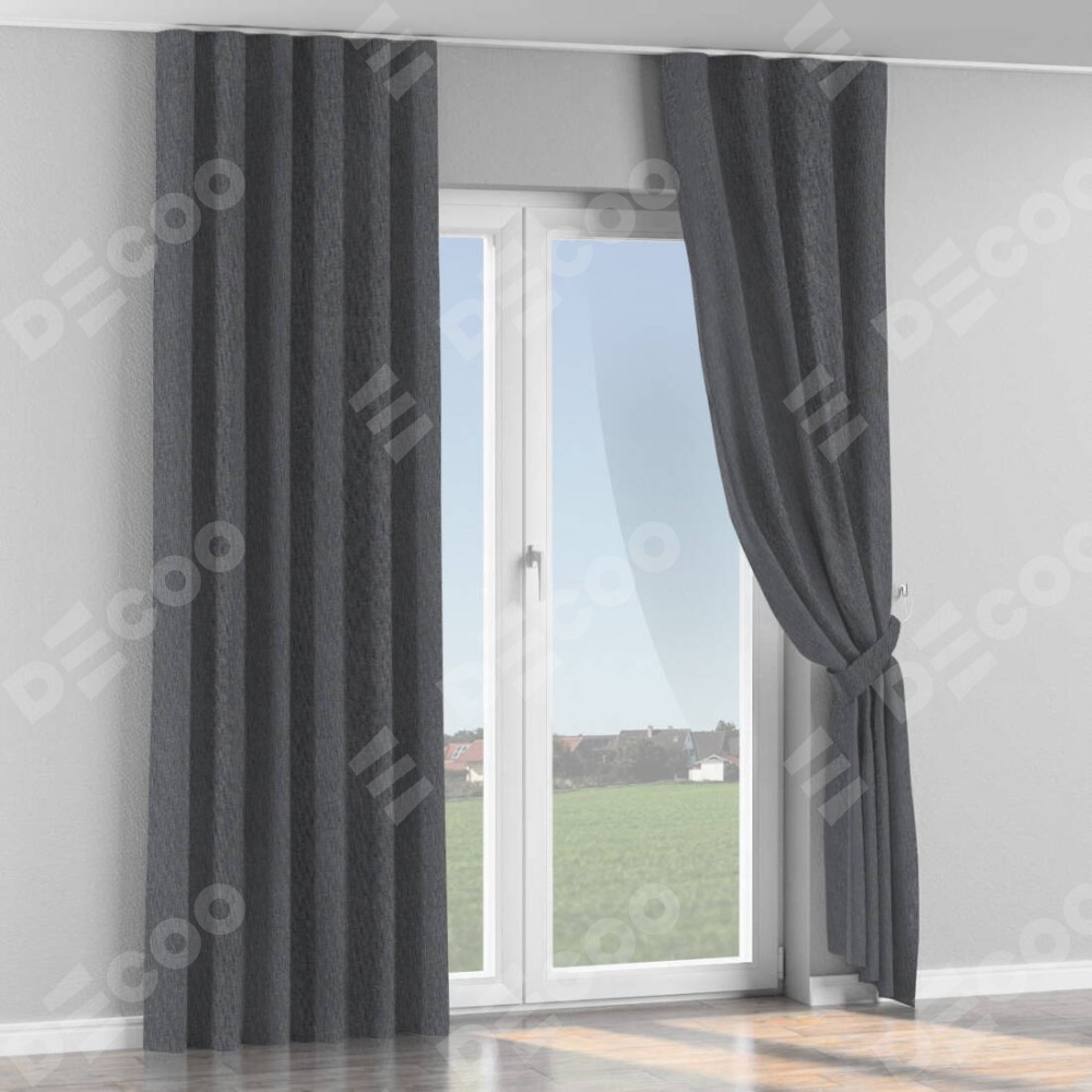 Комплект прямых штор, от производителя «Cortin», пошиты из ткани лён димаут графит, артикул ткани 140644. С изнаночной стороны в верхней части штор пристрачивается шторная лента с декоративными складками «Волна». Для создания элегантных складок рекомендуемый коэффициент 1:2 (на 100 см. ширины проёма 200 см. ширины ткани). Важно! Ширина штор указана без учёта коэффициента сборки!