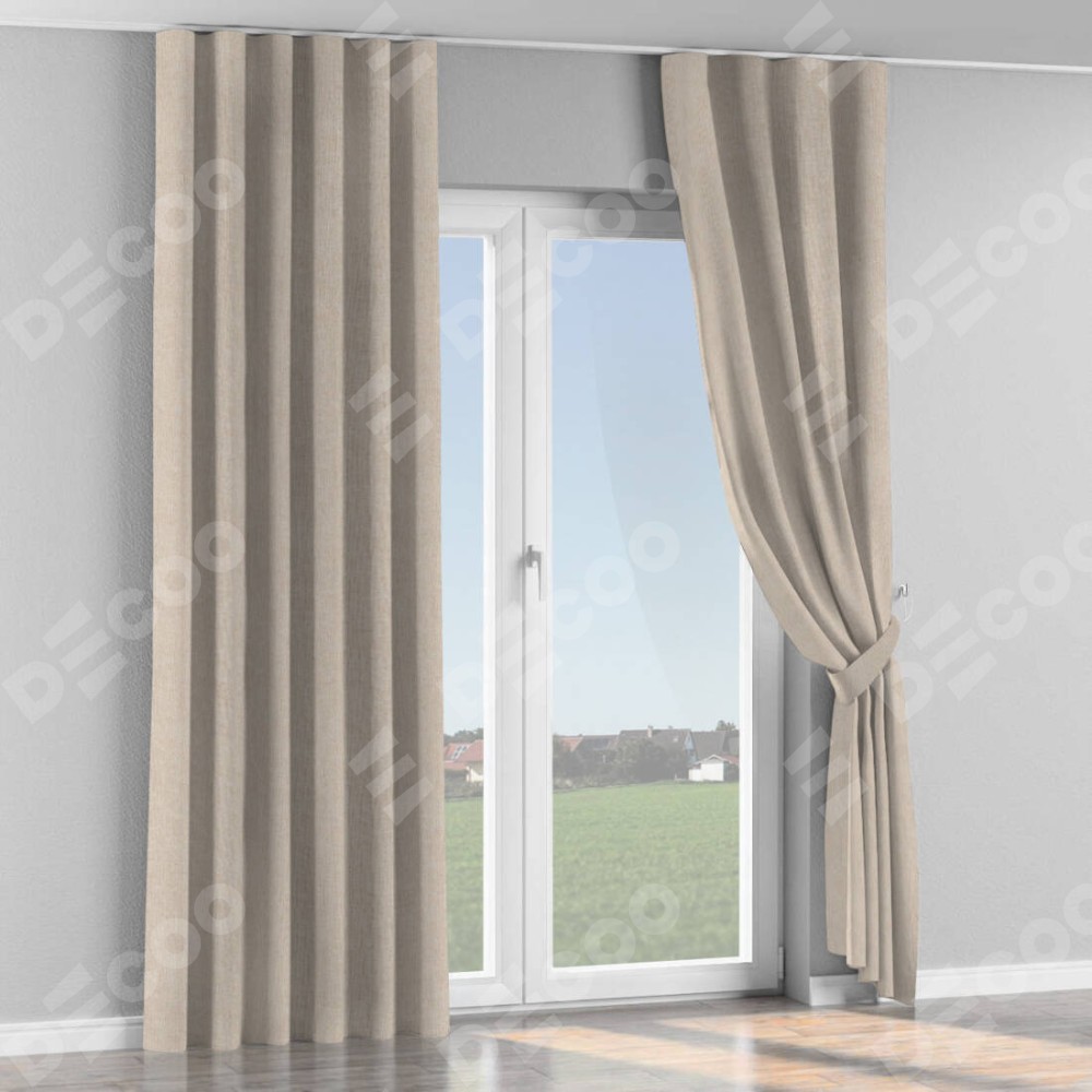 Комплект прямых штор, от производителя «Cortin», пошиты из ткани лён кашемир натуральный беж. С изнаночной стороны в верхней части штор пристрачивается шторная лента с декоративными складками «Волна». Для создания элегантных складок рекомендуемый коэффициент 1:2 (на 100 см. ширины проёма 200 см. ширины ткани). Важно! Ширина штор указана без учёта коэффициента сборки!